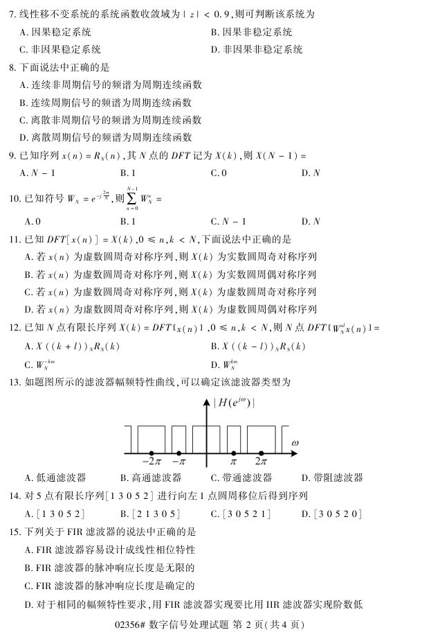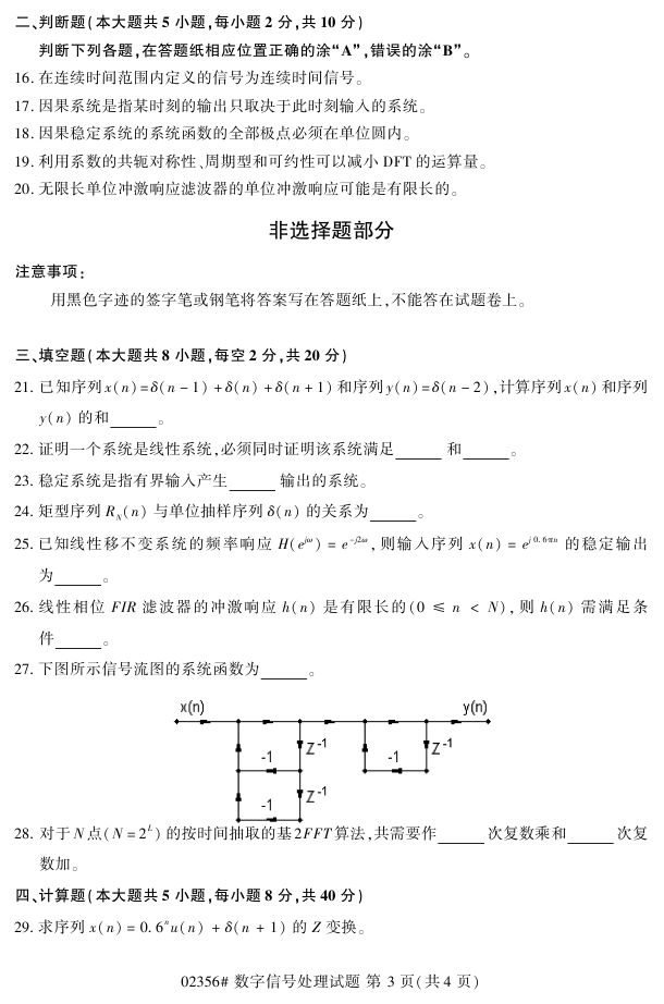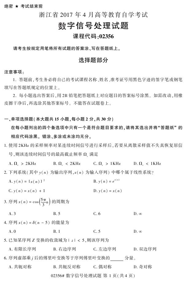 浙江省2017年4月自考02356《数字信号处理》试题.pdf