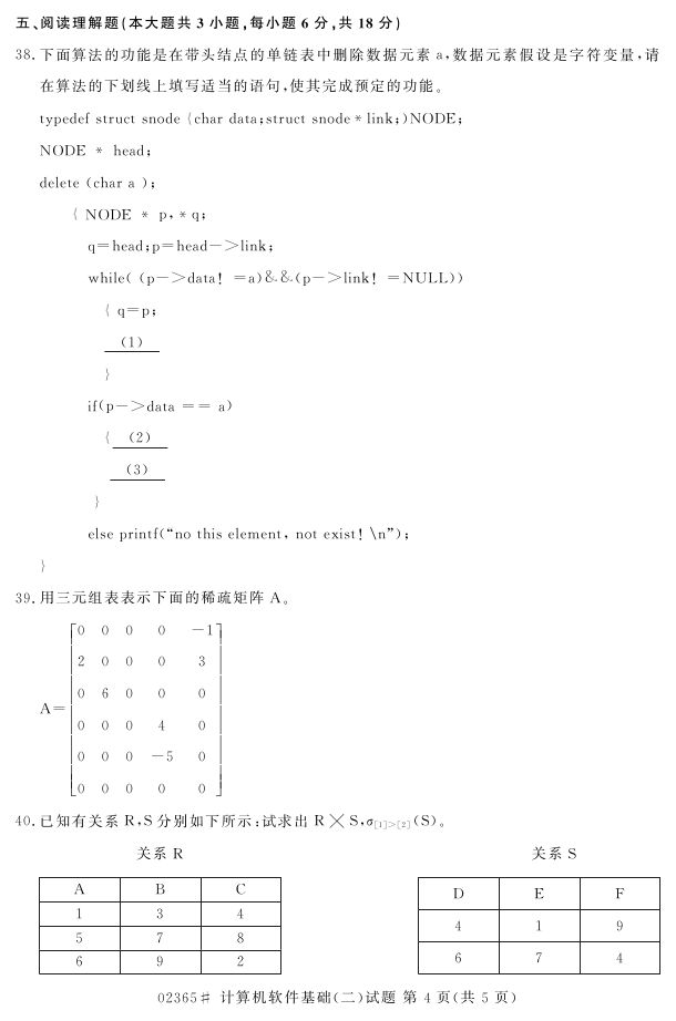 浙江省2017年4月自考02365《计算机软件基础(二)》试题.pdf