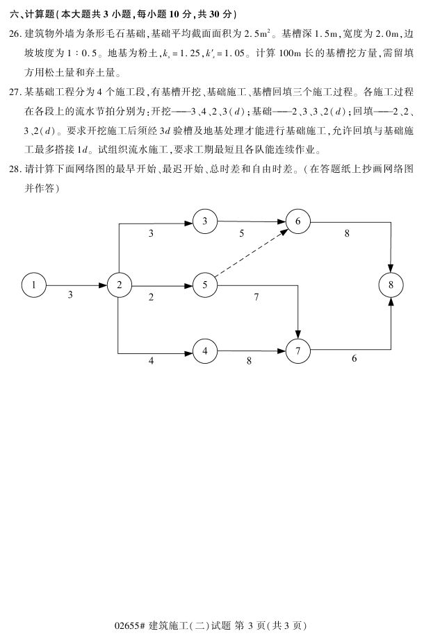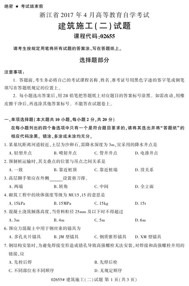 浙江省2017年4月自考02655《建筑施工(二)》试题.pdf