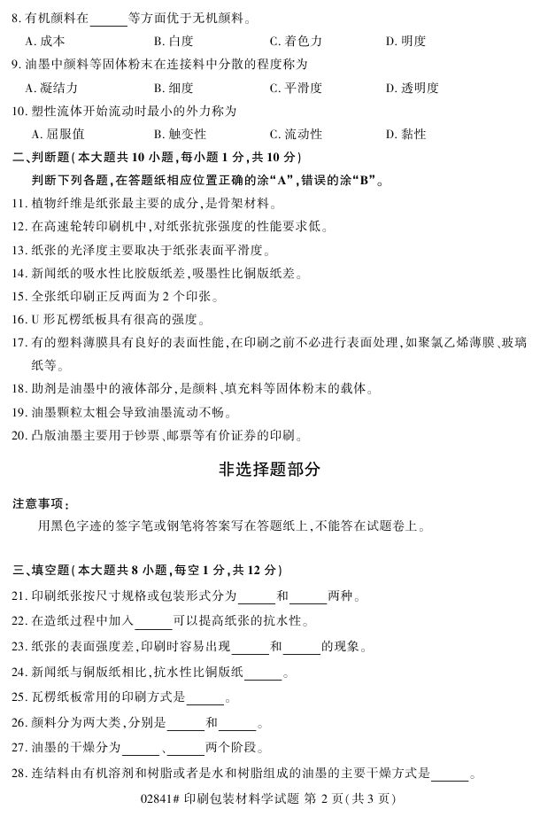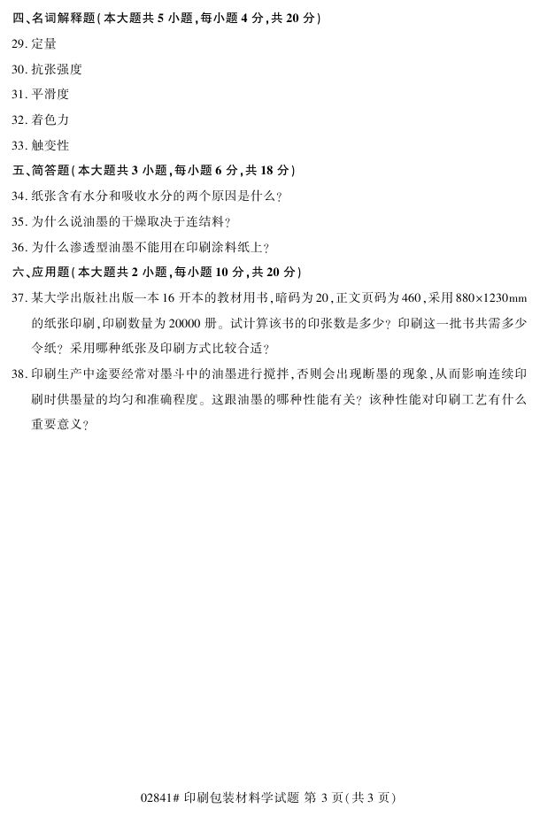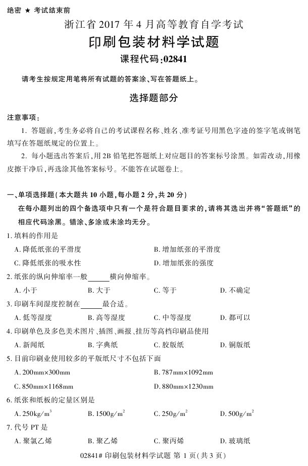 浙江省2017年4月自考02841《印刷包装材料学》试题.pdf
