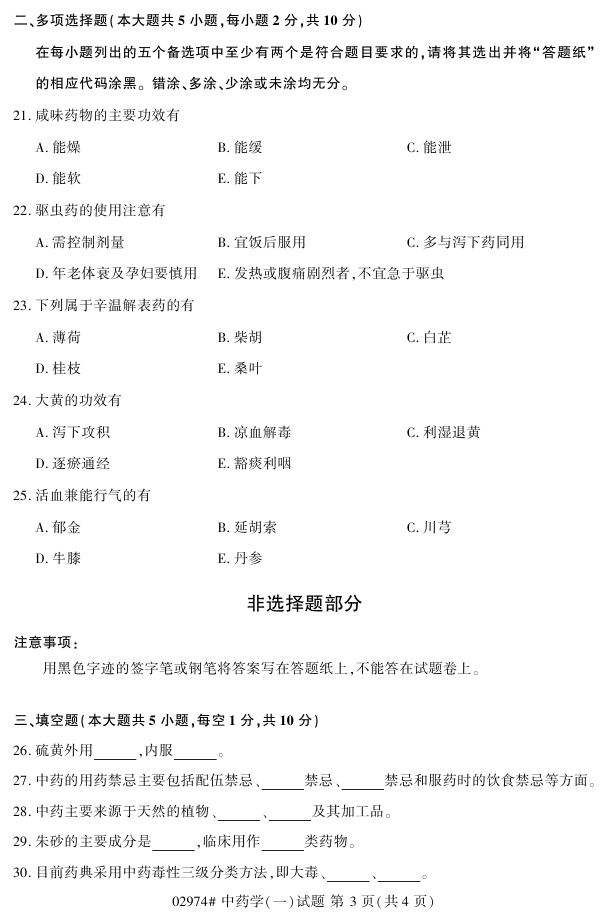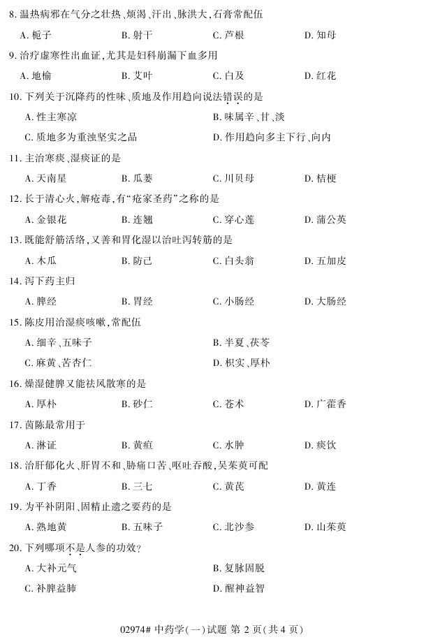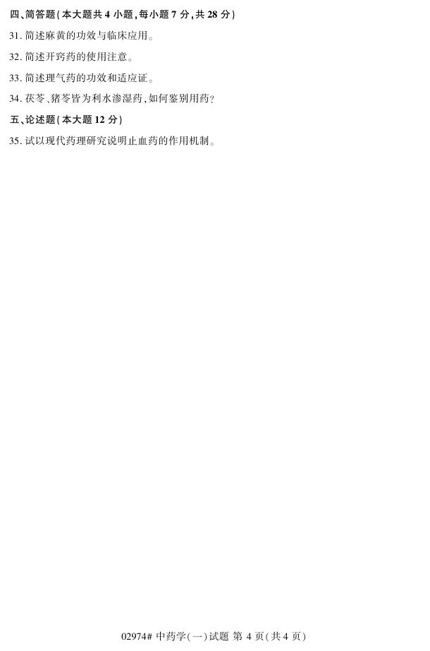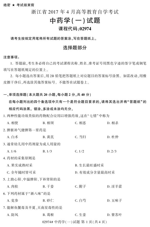 浙江省2017年4月自考02974《中药学(一)》试题.pdf