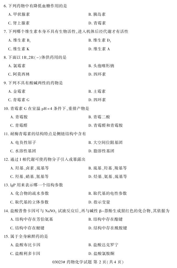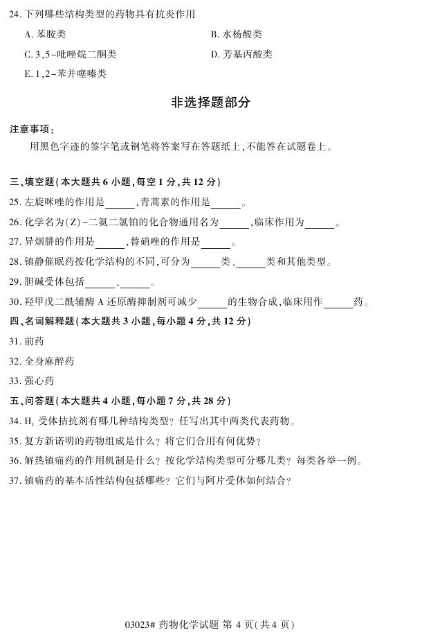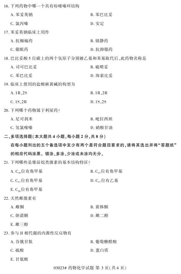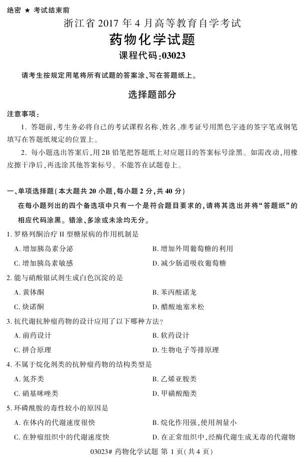 浙江省2017年4月自考03023《药物化学》试题.pdf