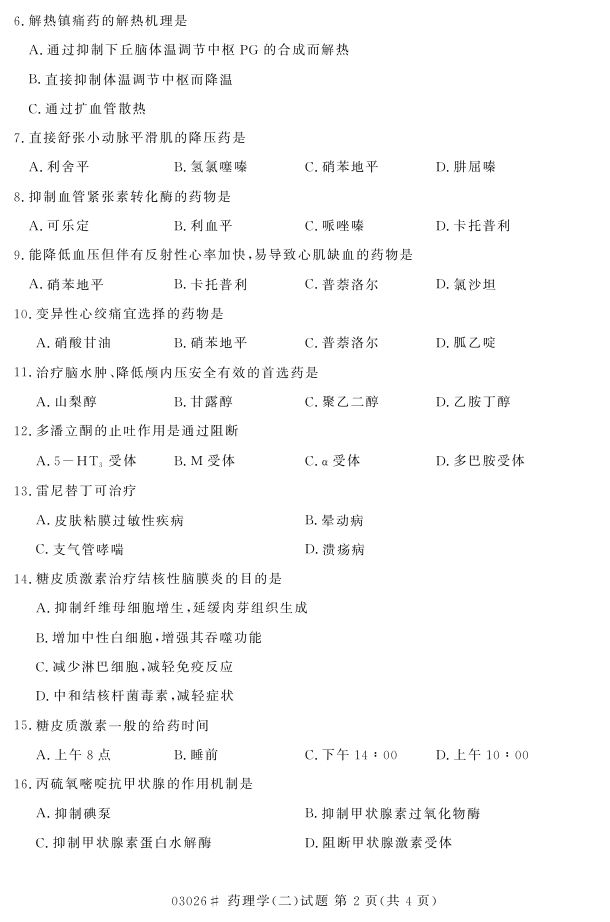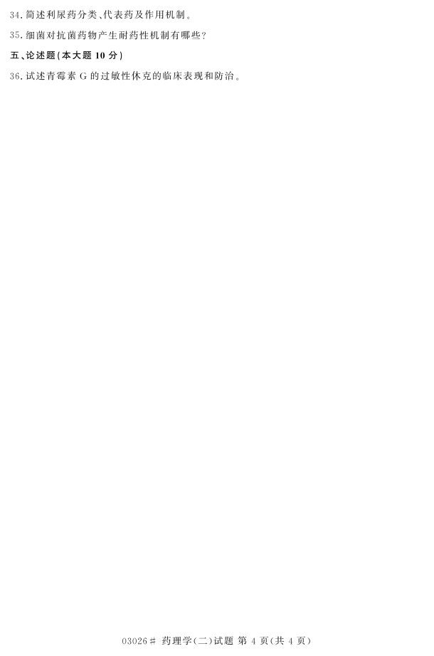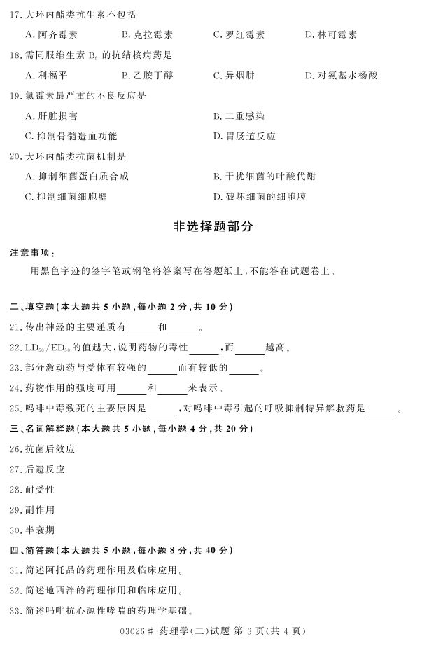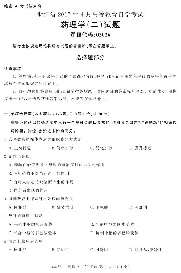 浙江省2017年4月自考03026《药理学(二)》试题.pdf