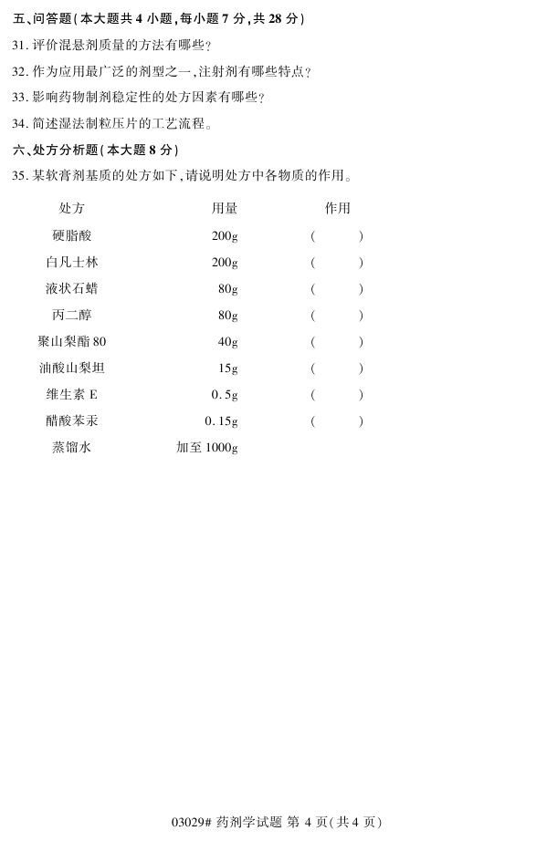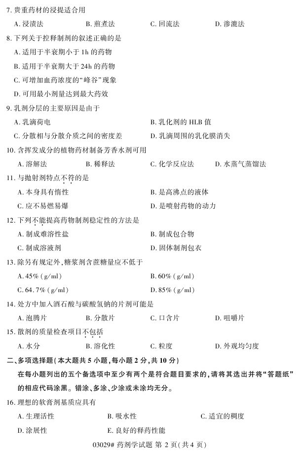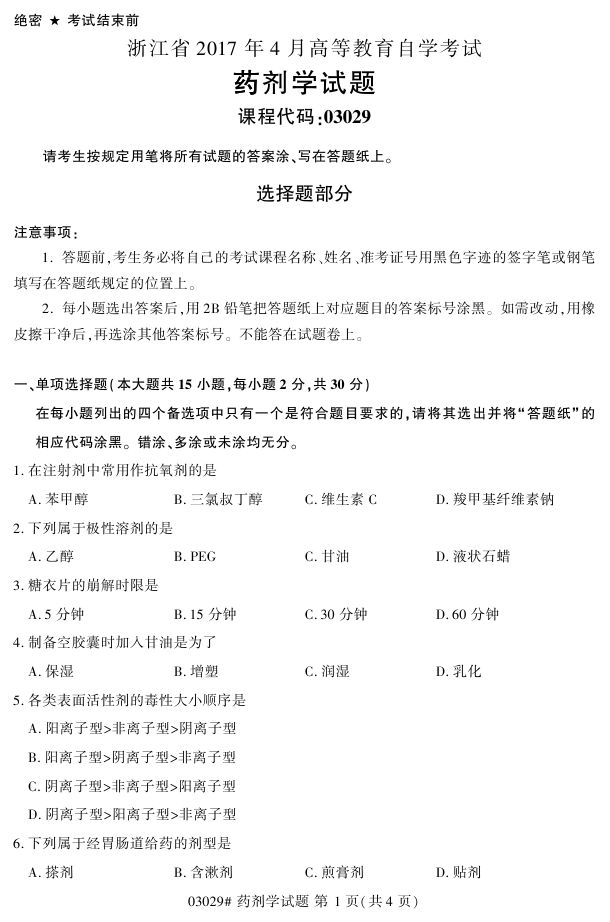 浙江省2017年4月自考03029《药剂学》试题.pdf