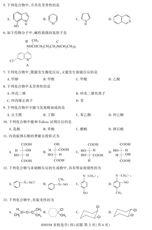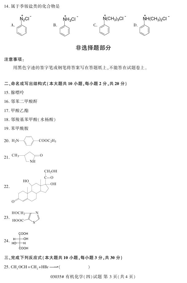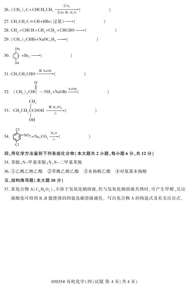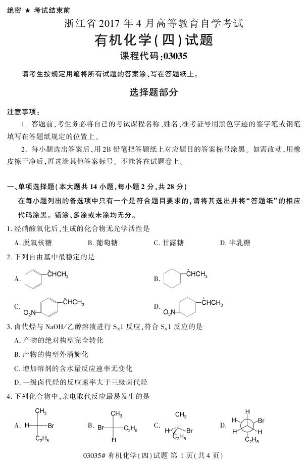 浙江省2017年4月自考03035《有机化学(四)》试题.pdf