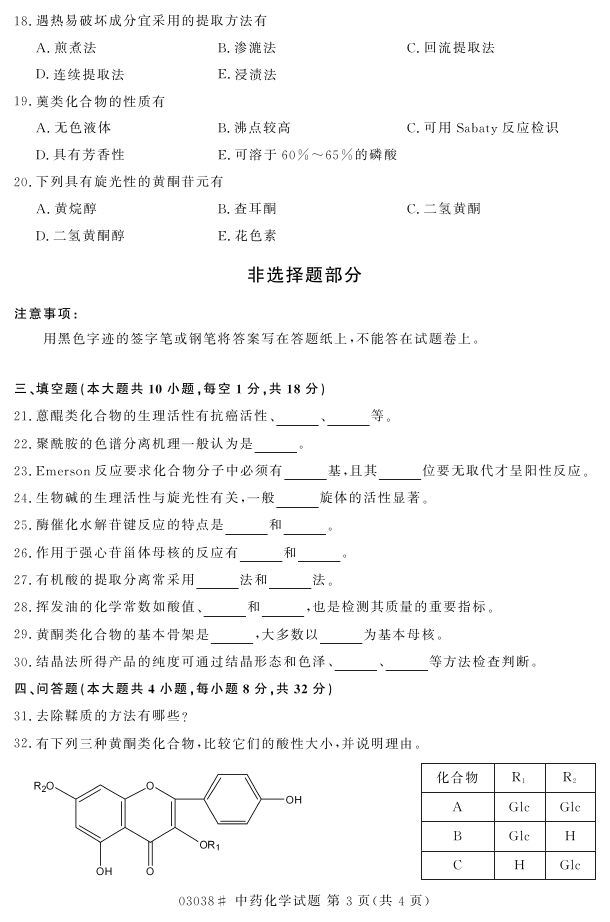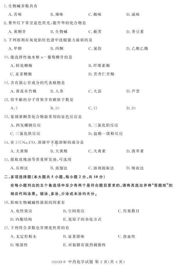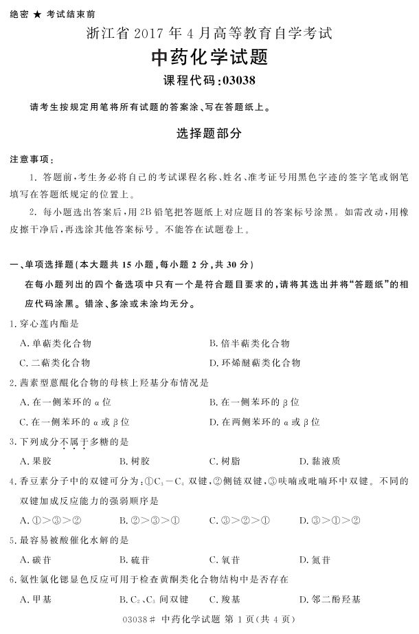 浙江省2017年4月自考03038《中药化学》试题.pdf
