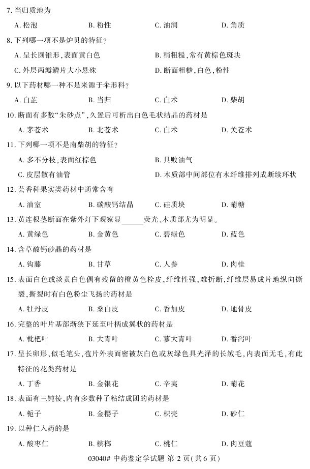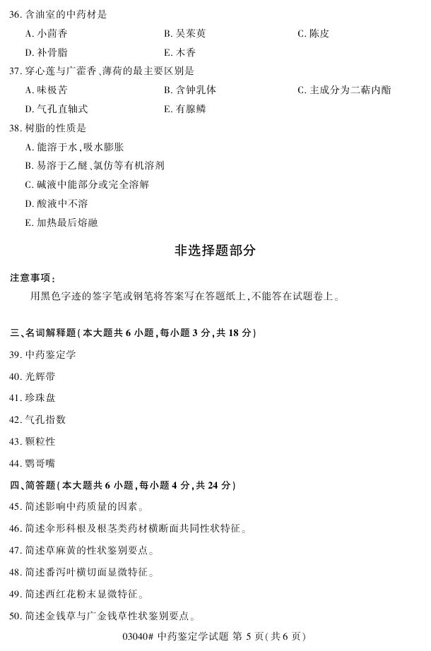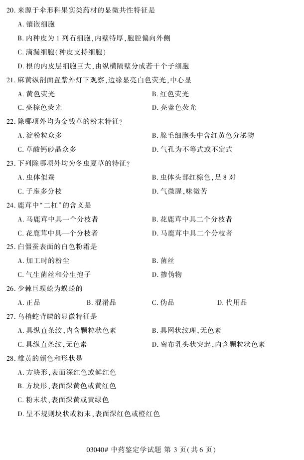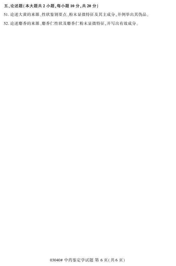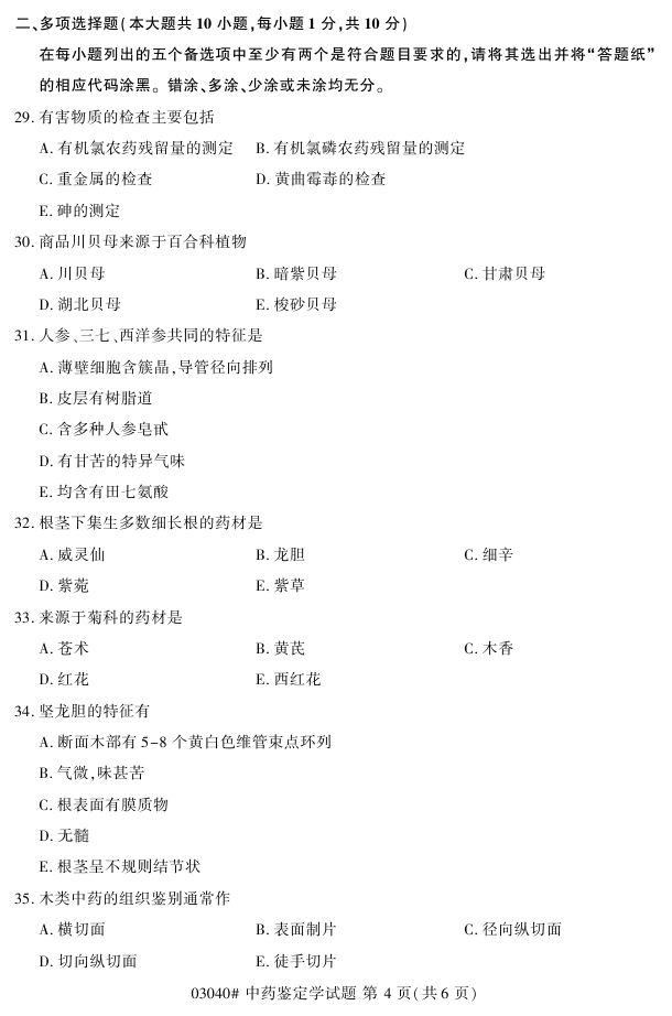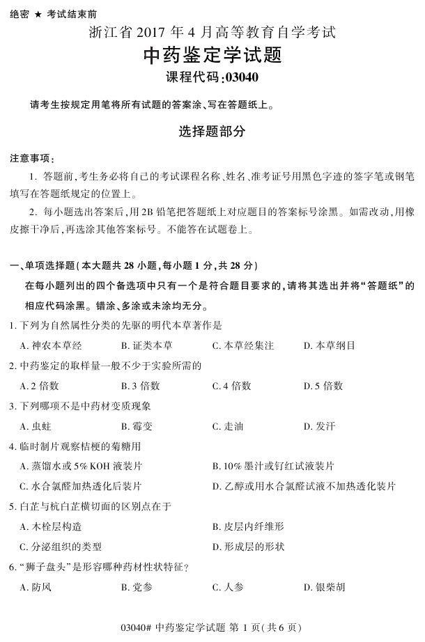 浙江省2017年4月自考03040《中药鉴定学》试题.pdf