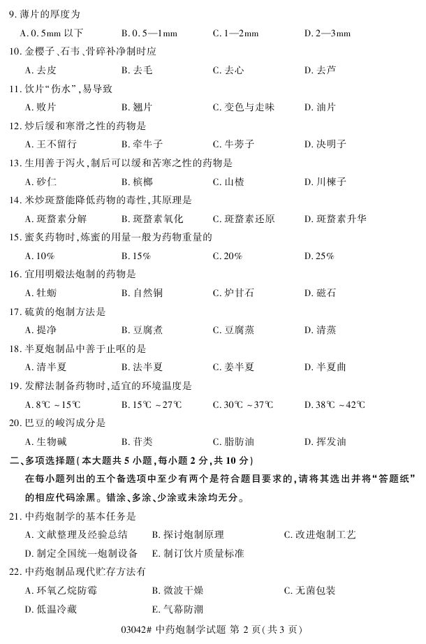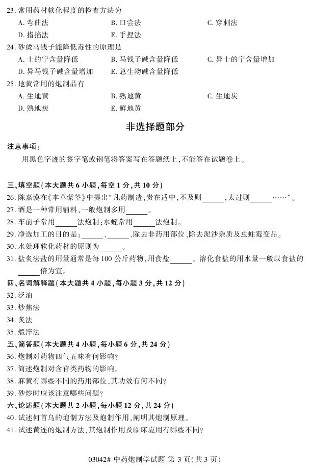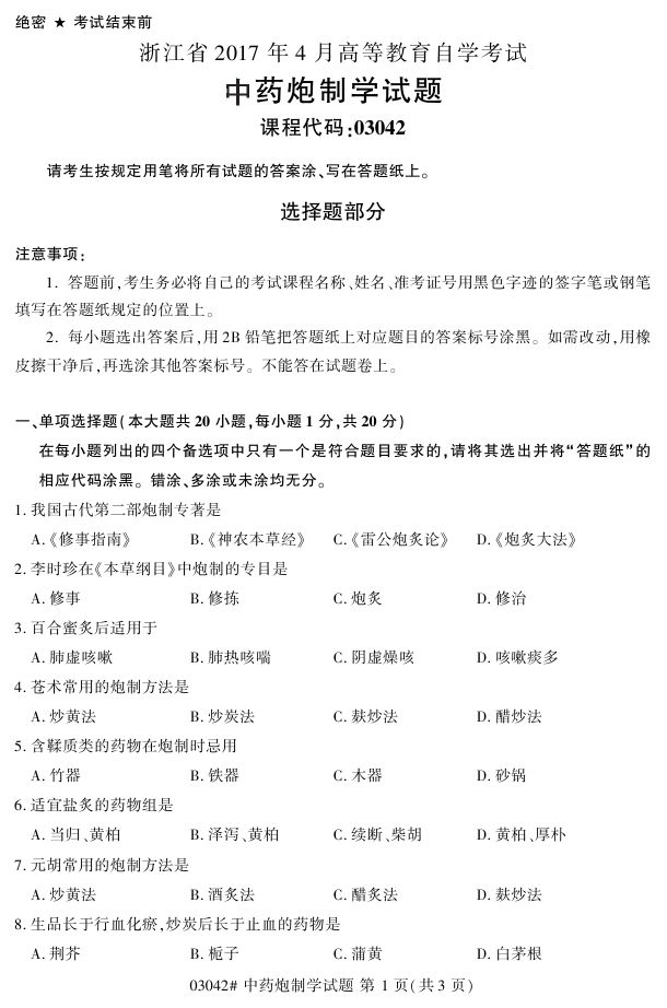 浙江省2017年4月自考03042《中药炮制学》试题.pdf