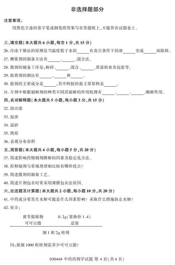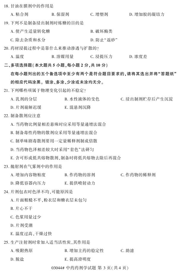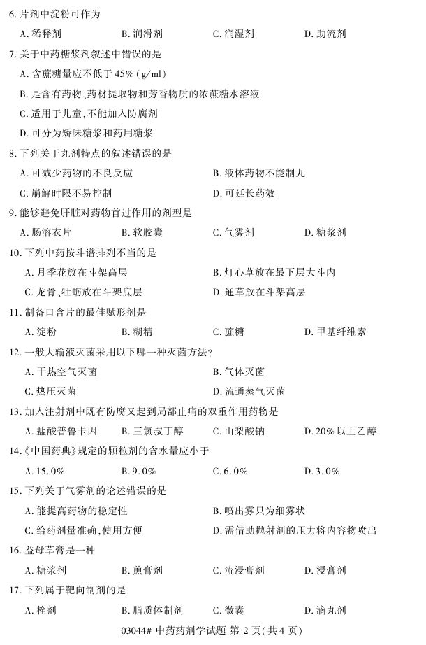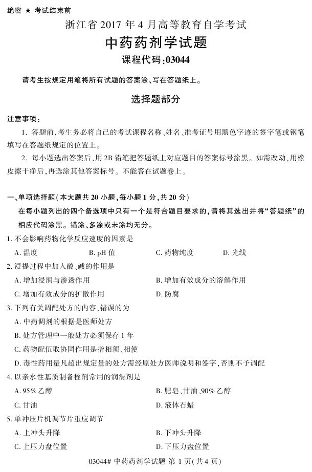 浙江省2017年4月自考03044《中药药剂学》试题.pdf