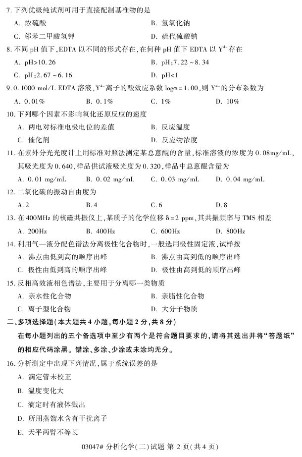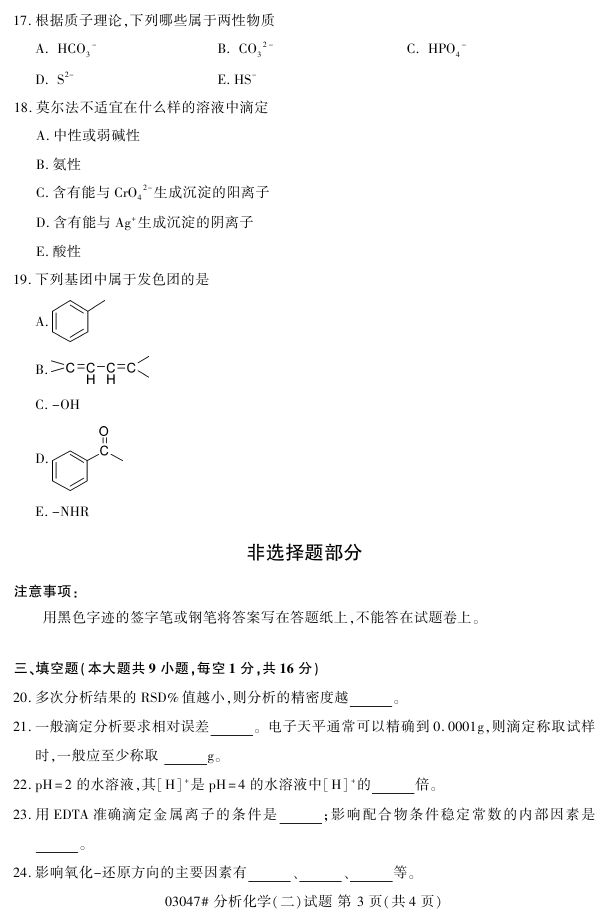 浙江省2017年4月自考03047《分析化学(二)》试题.pdf