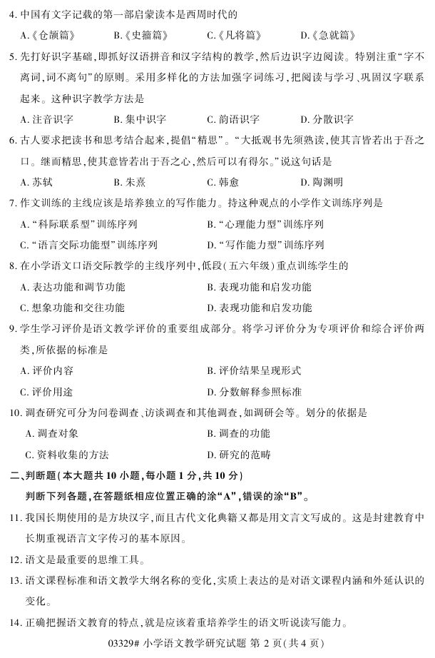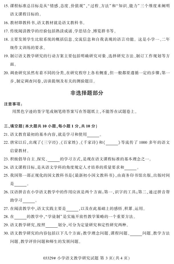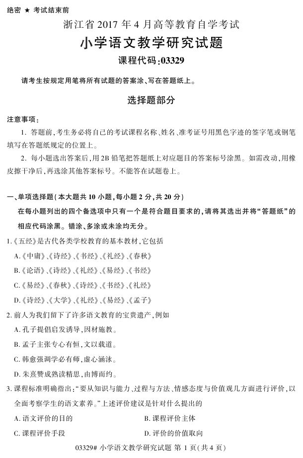 浙江省2017年4月自考03329《小学语文教学研究》试题.pdf