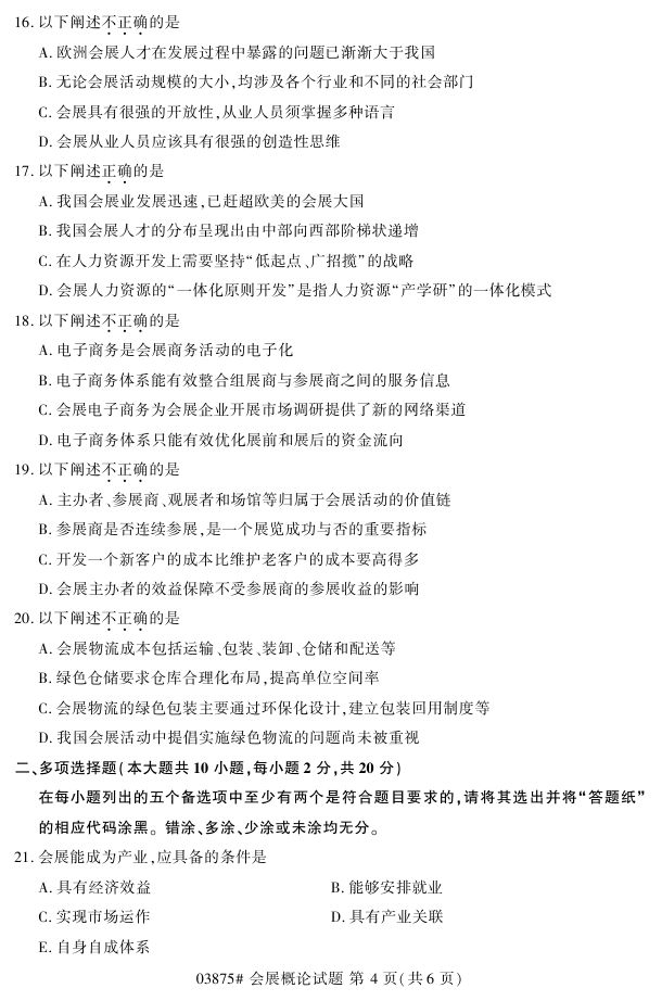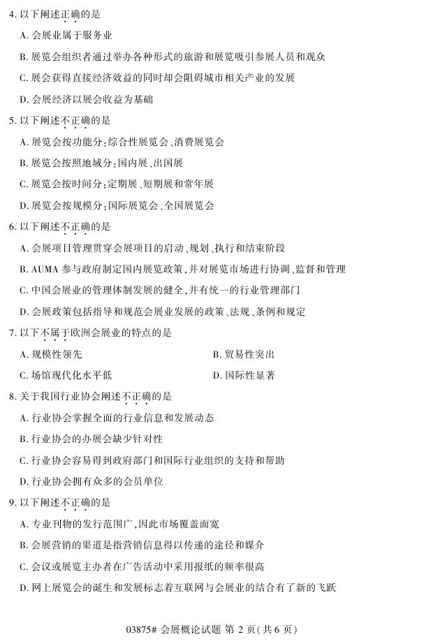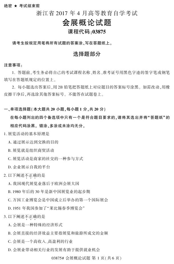 浙江省2017年4月自考03875《会展概论》试题.pdf