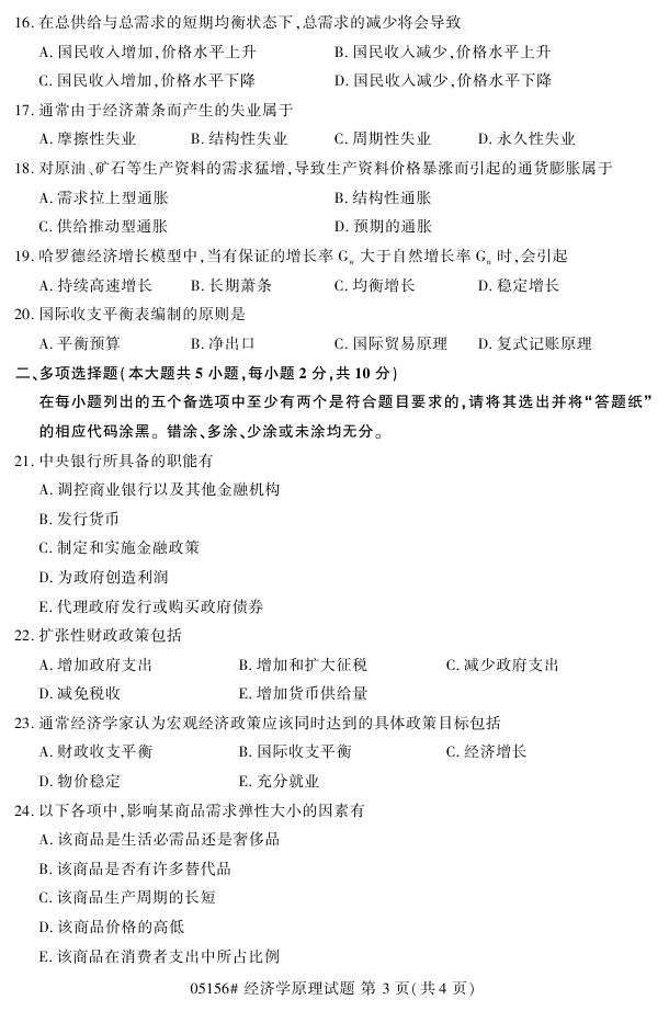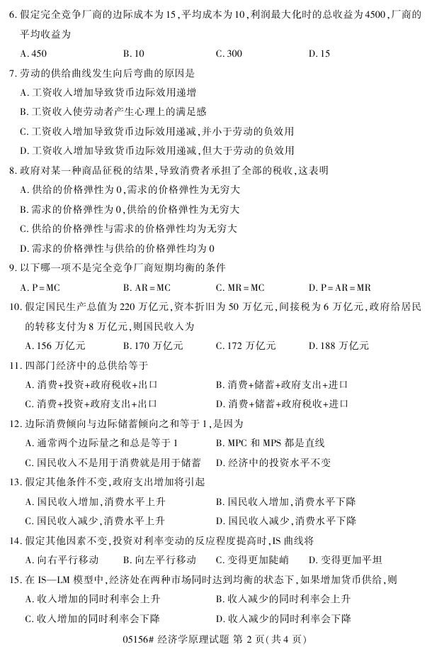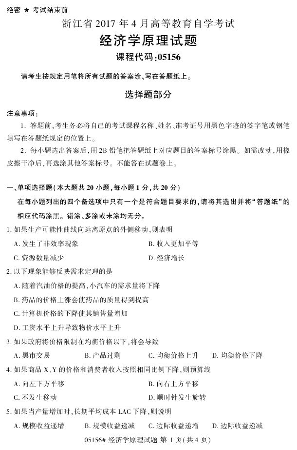 浙江省2017年4月自考05156《经济学原理》试题.pdf