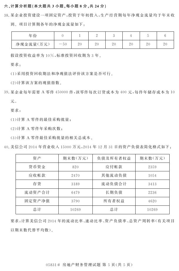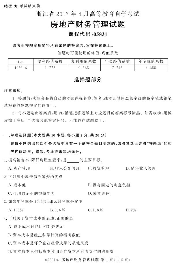 浙江省2017年4月自考05831《房地产财务管理》试题.pdf