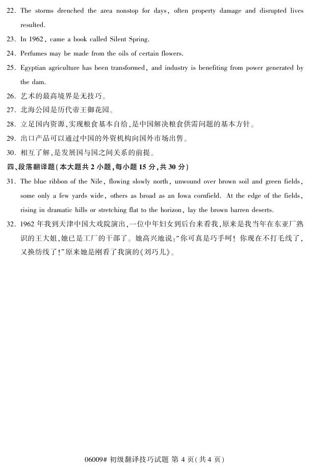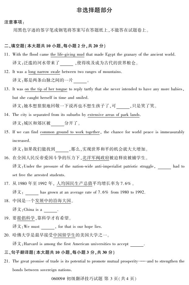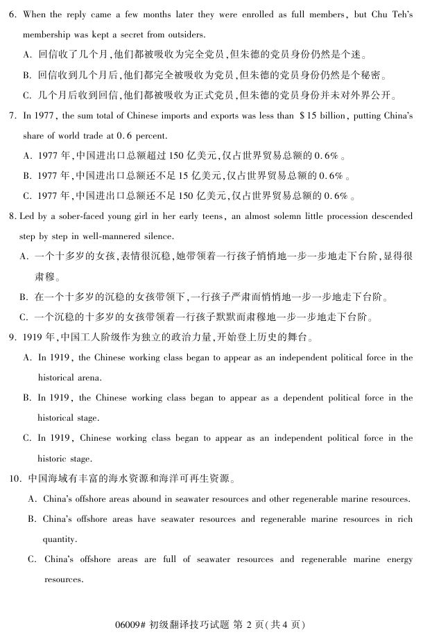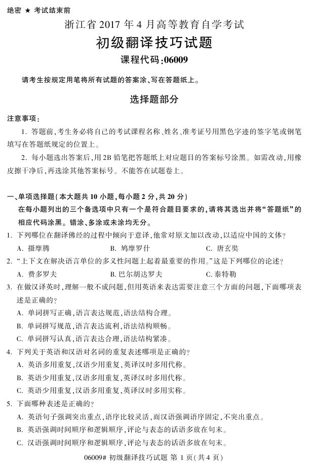 浙江省2017年4月自考06009《初级翻译技巧》试题.pdf