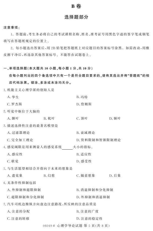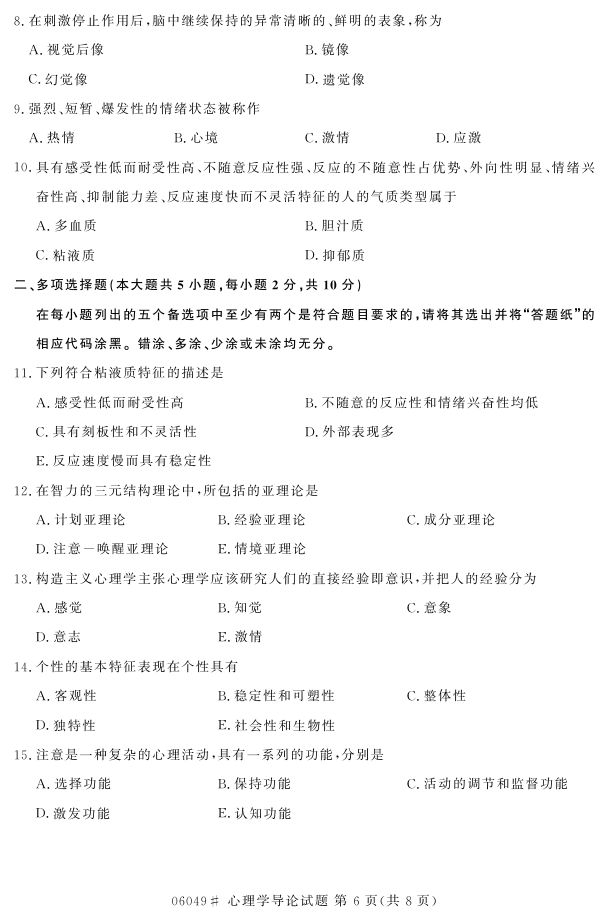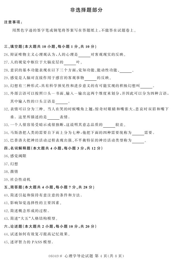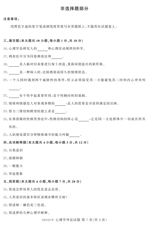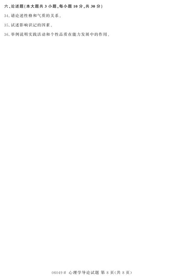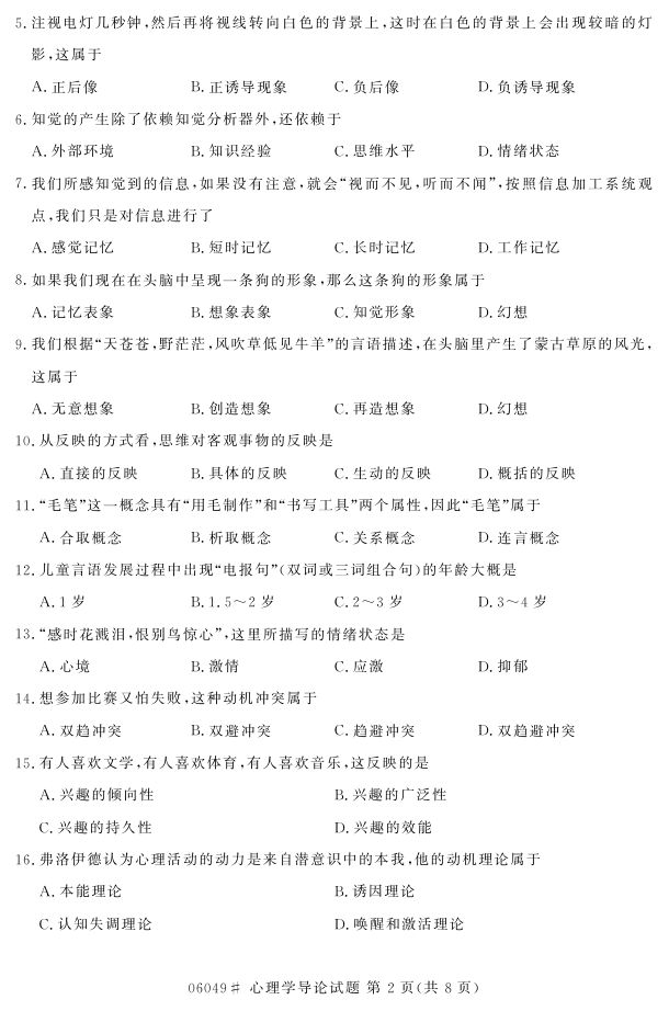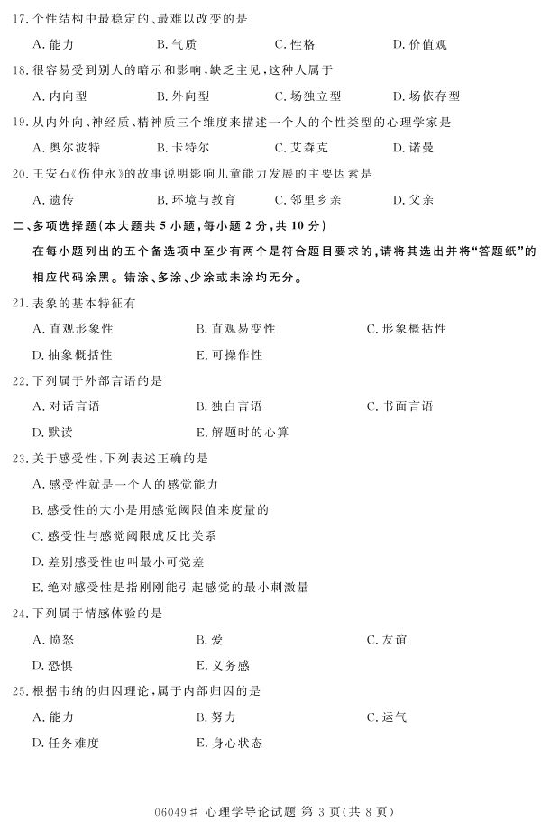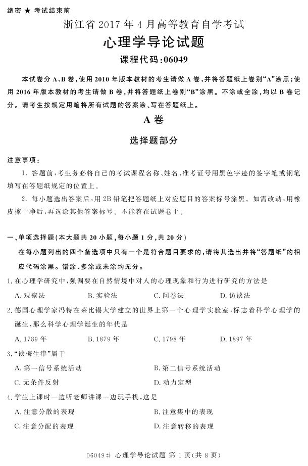 浙江省2017年4月自考06049《心理学导论》试题.pdf