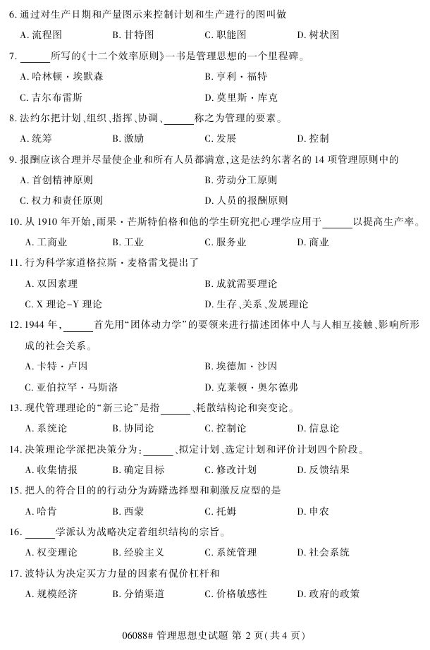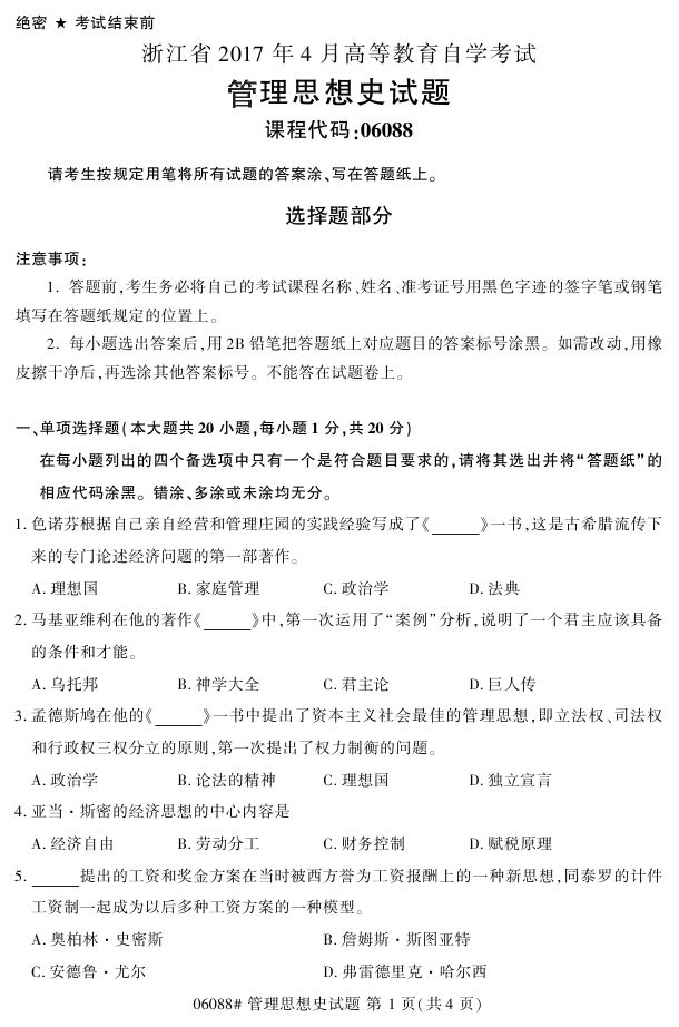 浙江省2017年4月自考06088《管理思想史》试题.pdf