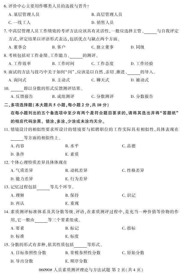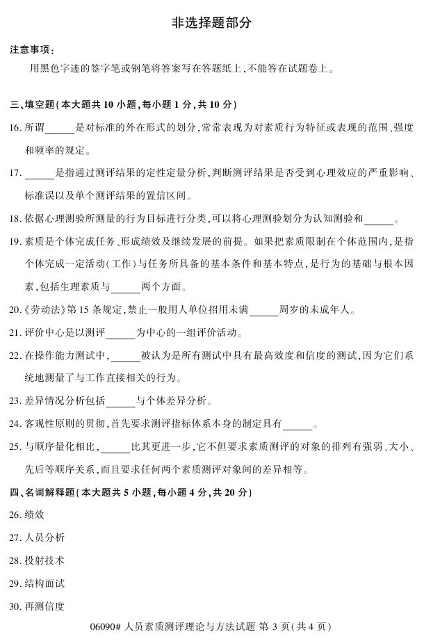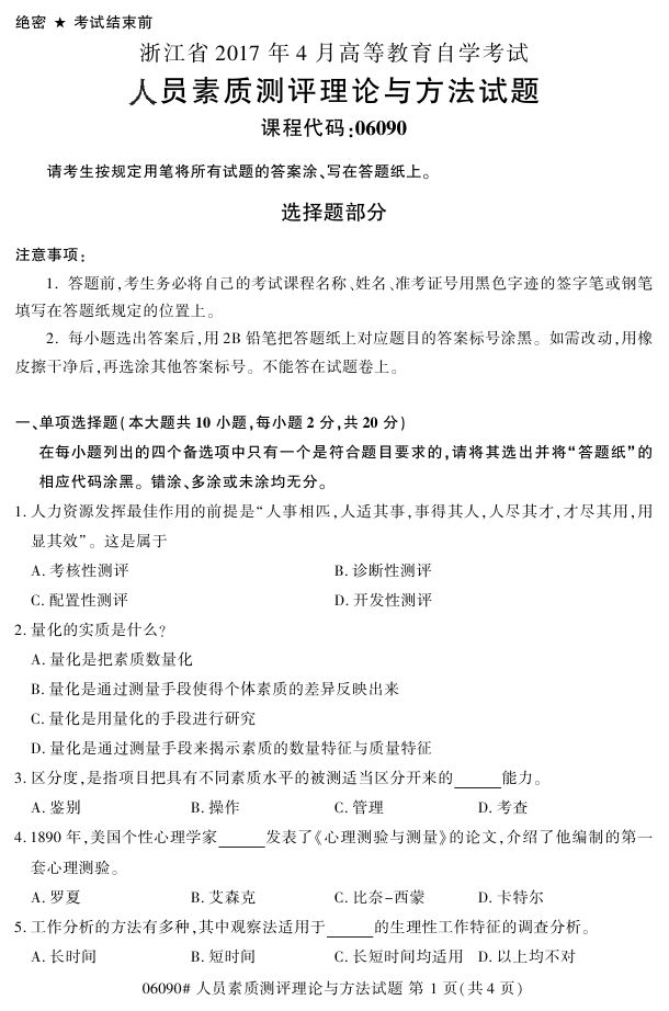 浙江省2017年4月自考06090《人员素质测评理论与方法》试题.pdf