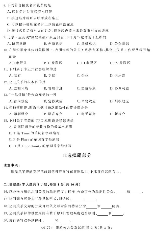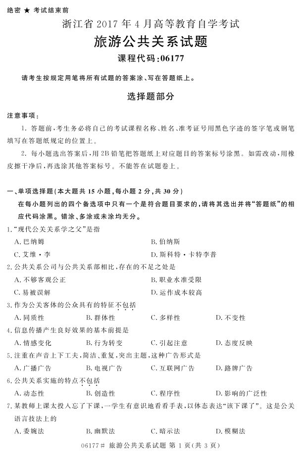 浙江省2017年4月自考06177《旅游公共关系》试题.pdf