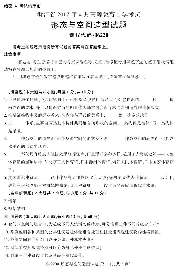 浙江省2017年4月自考06220《形态与空间造型》试题.pdf