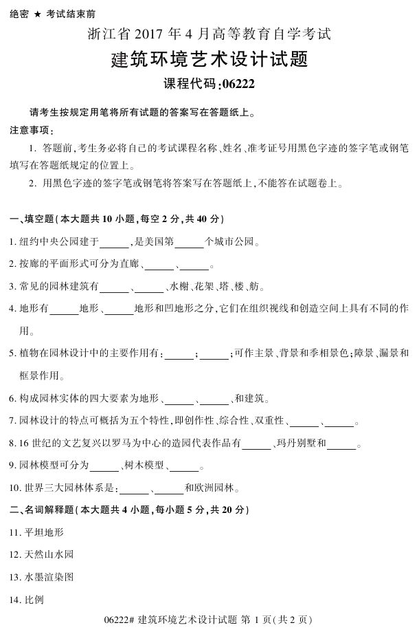 浙江省2017年4月自考06222《建筑环境艺术设计》试题.pdf