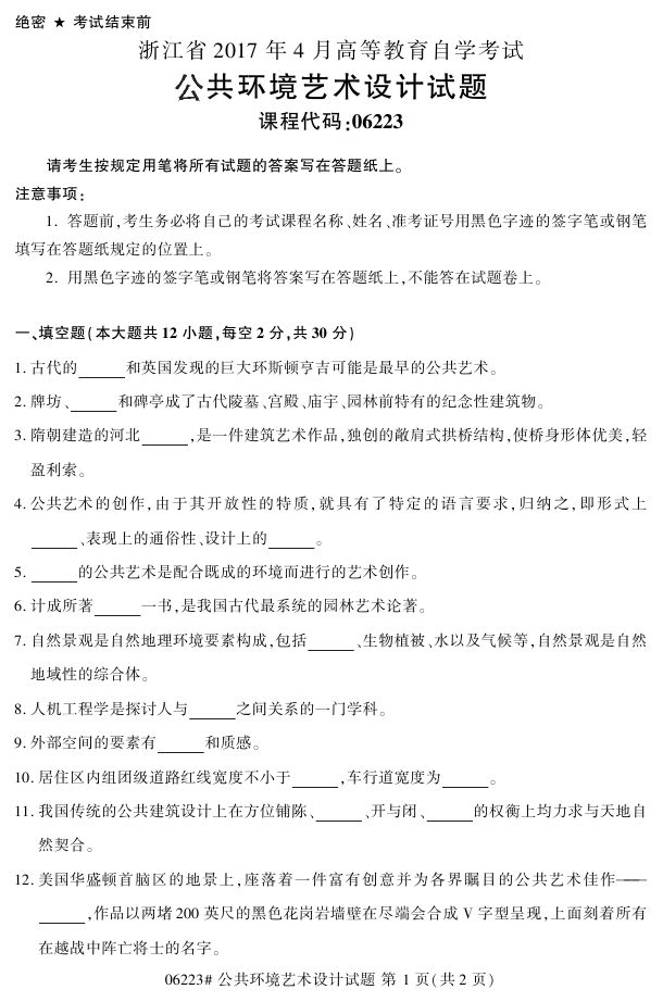 浙江省2017年4月自考06223《公共环境艺术设计》试题.pdf