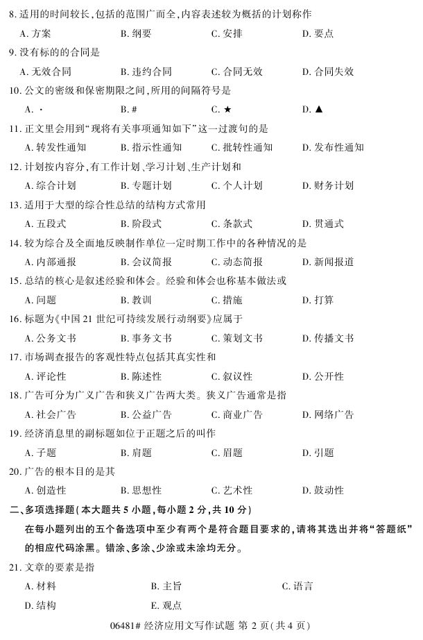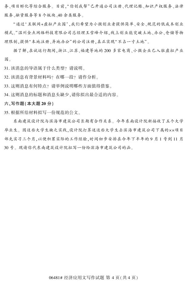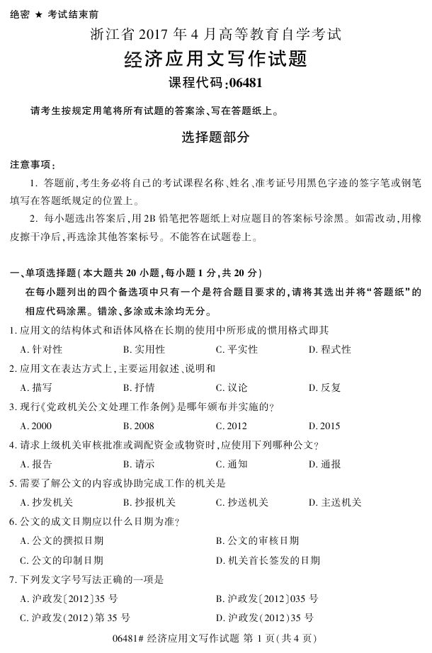 浙江省2017年4月自考06481《经济应用文写作》试题.pdf