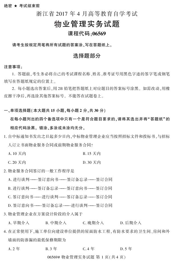 浙江省2017年4月自考06569《物业管理实务》试题.pdf