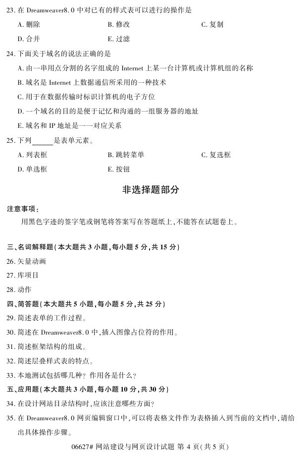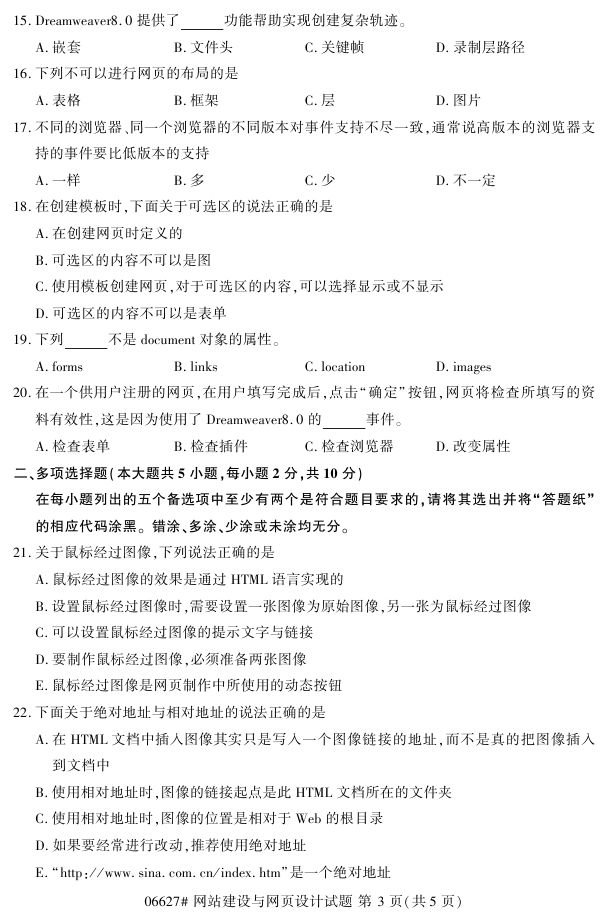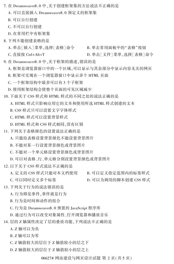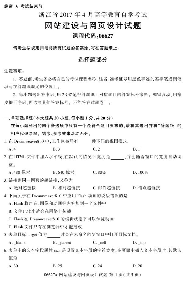 浙江省2017年4月自考06627《网站建设与网页设计》试题.pdf