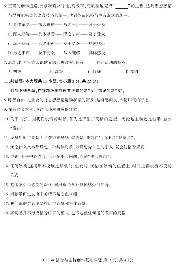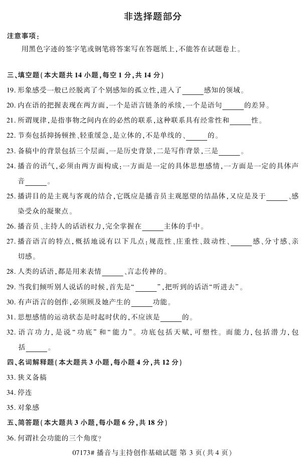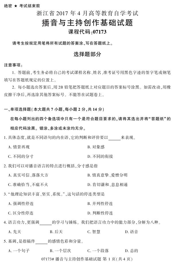浙江省2017年4月自考07173《播音与主持创作基础》试题.pdf