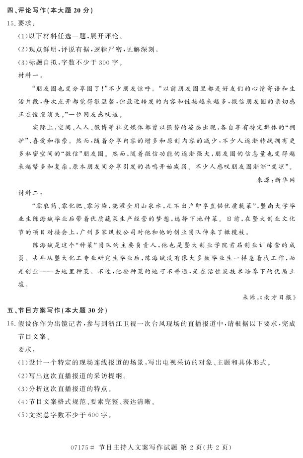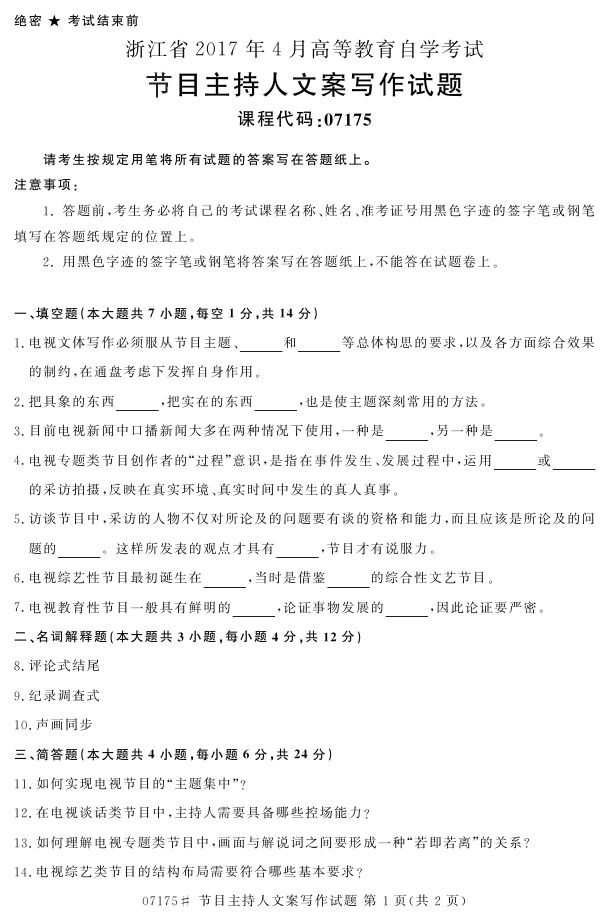浙江省2017年4月自考07175《节目主持人文案写作》试题.pdf