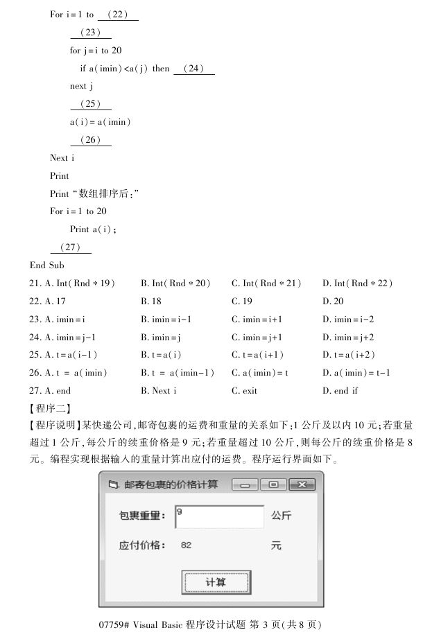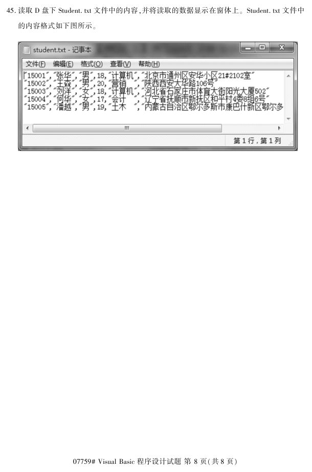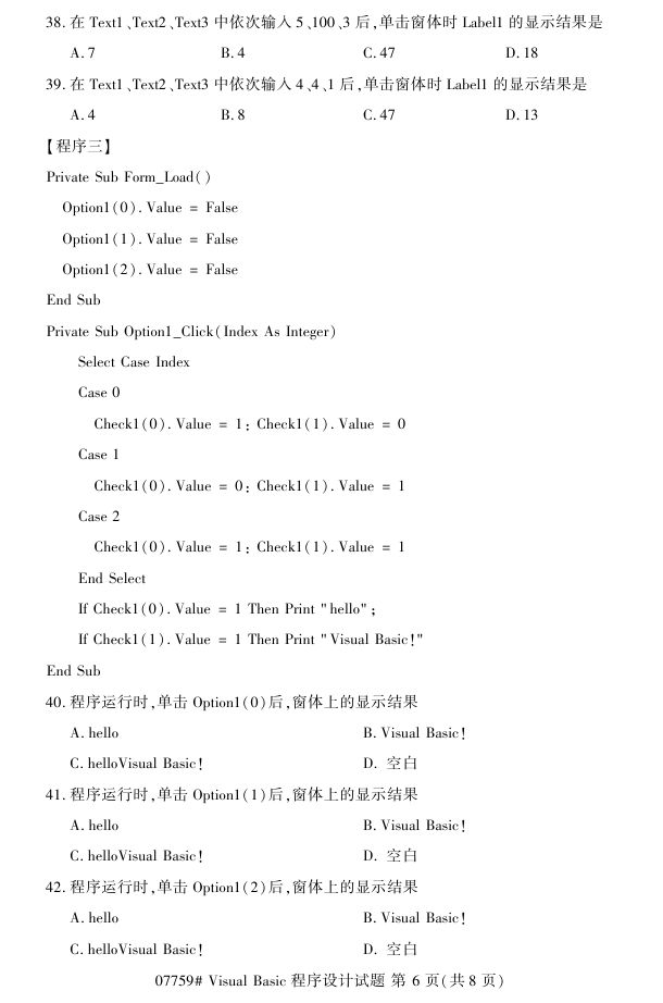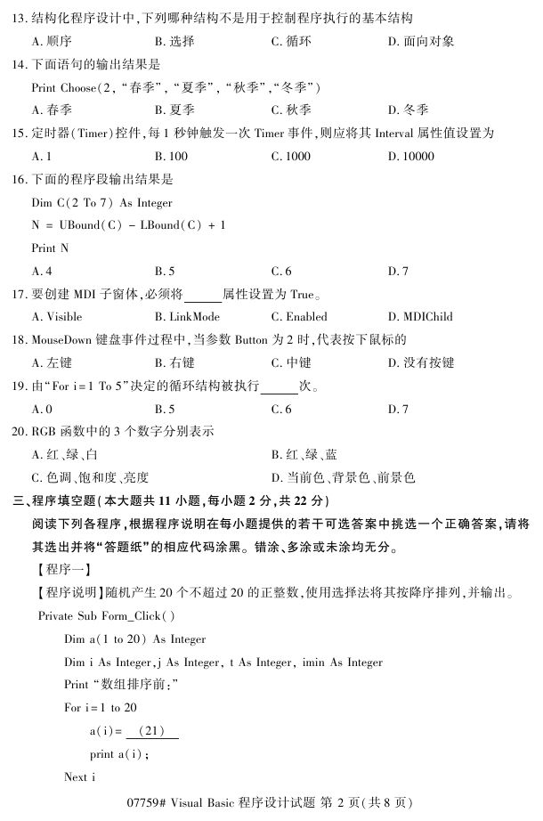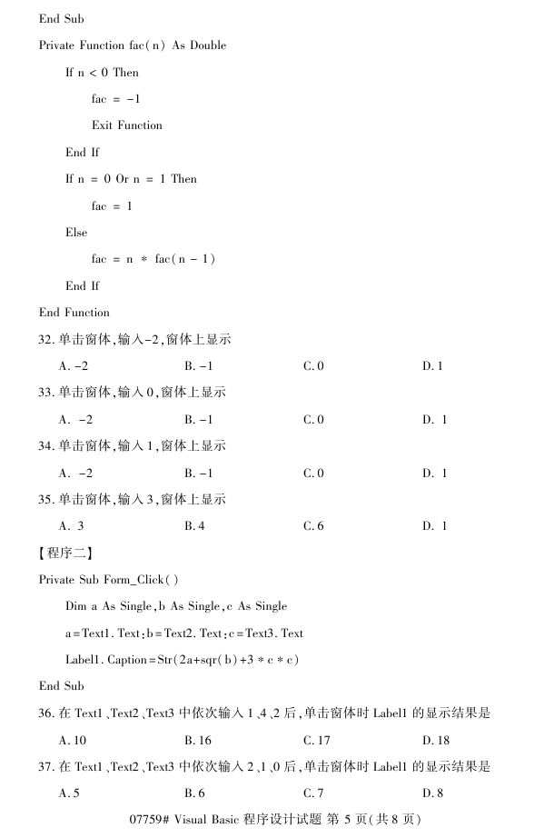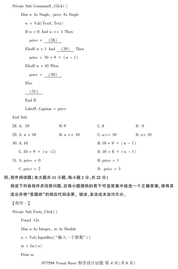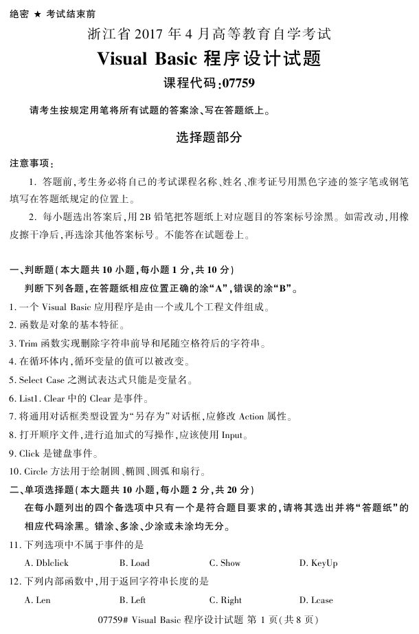 浙江省2017年4月自考07759《visual basic程序设计》试题.pdf