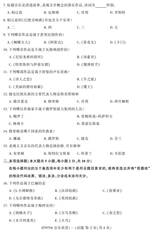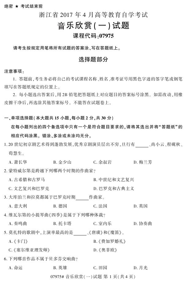 浙江省2017年4月自考07975《音乐欣赏(一)》试题.pdf
