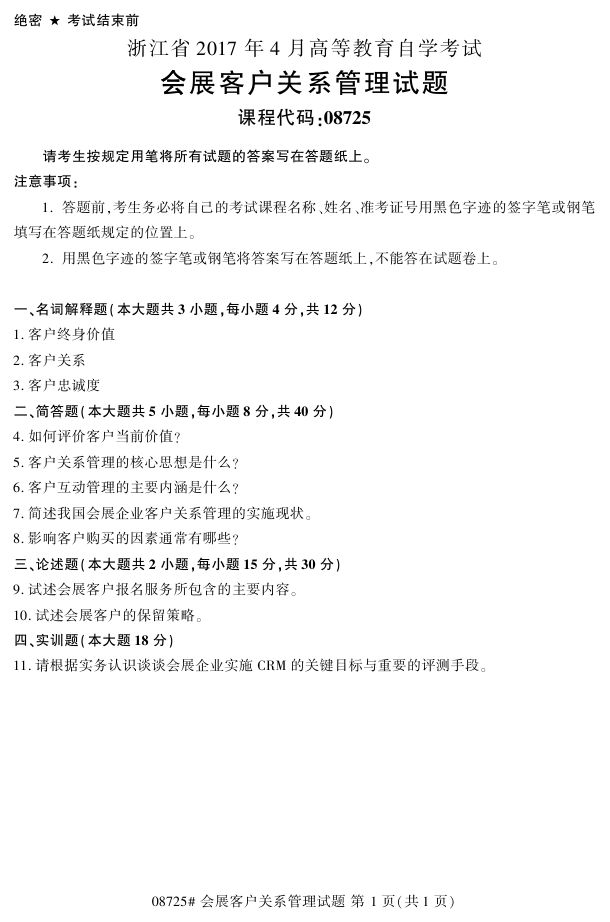 浙江省2017年4月自考08725《会展客户关系管理》试题.pdf