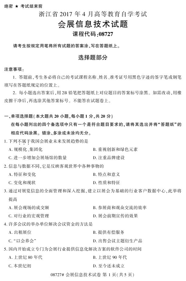 浙江省2017年4月自考08727《会展信息技术》试题.pdf