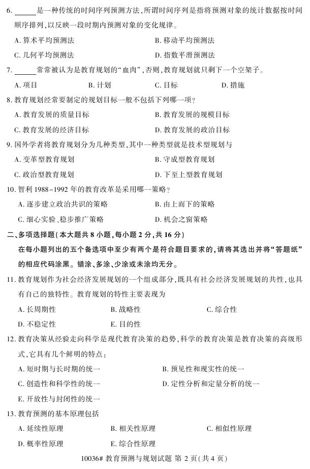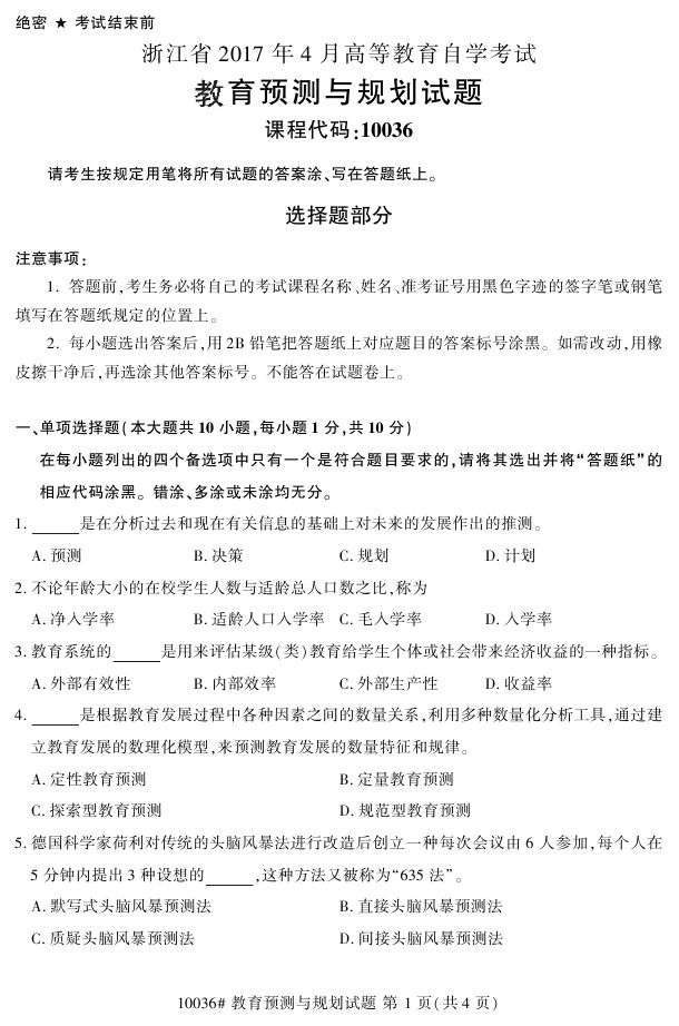 浙江省2017年4月自考10036《教育预测与规划》试题.pdf