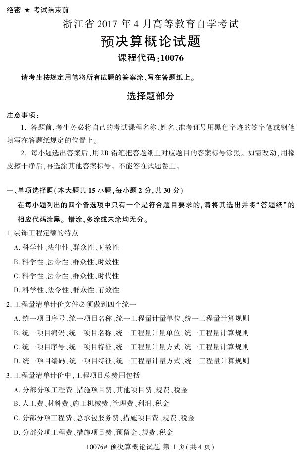 浙江省2017年4月自考10076《预决算概论》试题.pdf