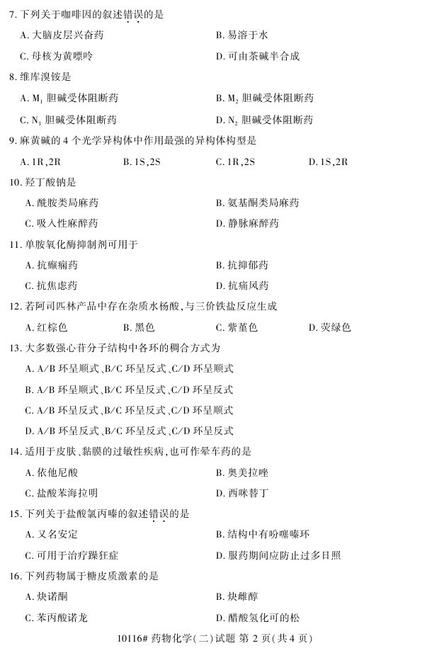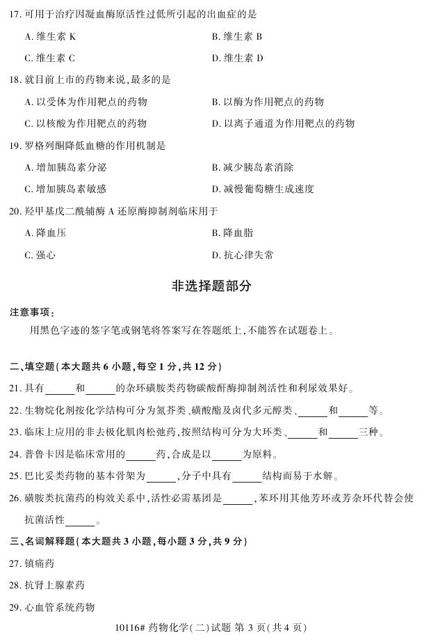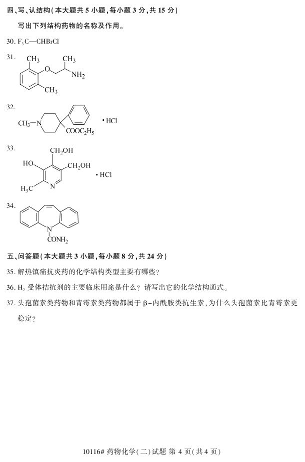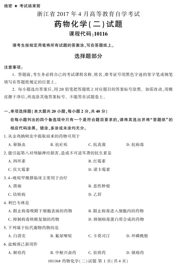 浙江省2017年4月自考10116《药物化学(二)》试题.pdf