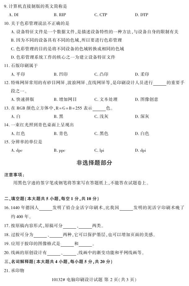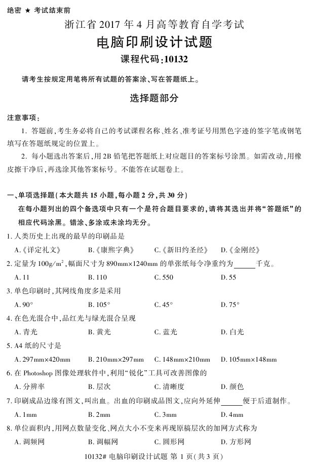 浙江省2017年4月自考10132《电脑印刷设计》试题.pdf