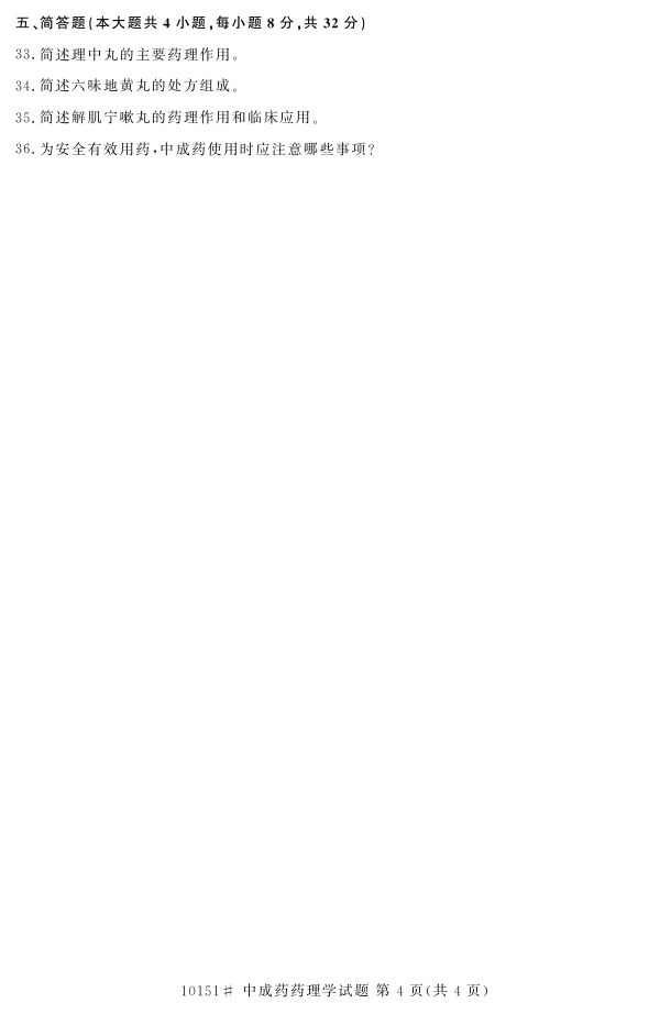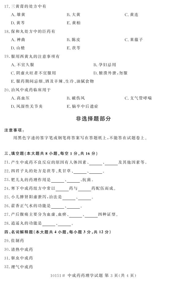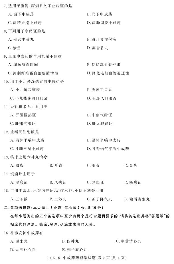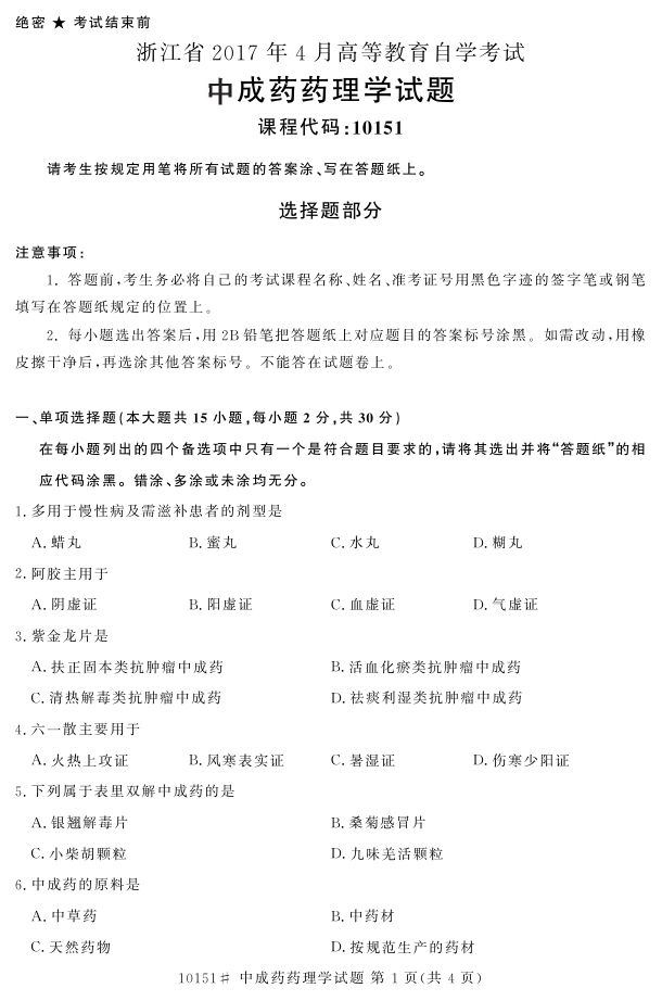 浙江省2017年4月自考10151《中成药药理学》试题.pdf