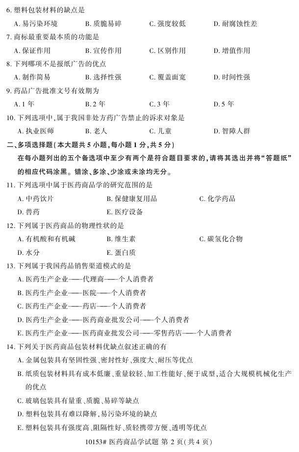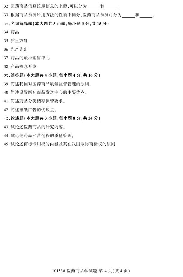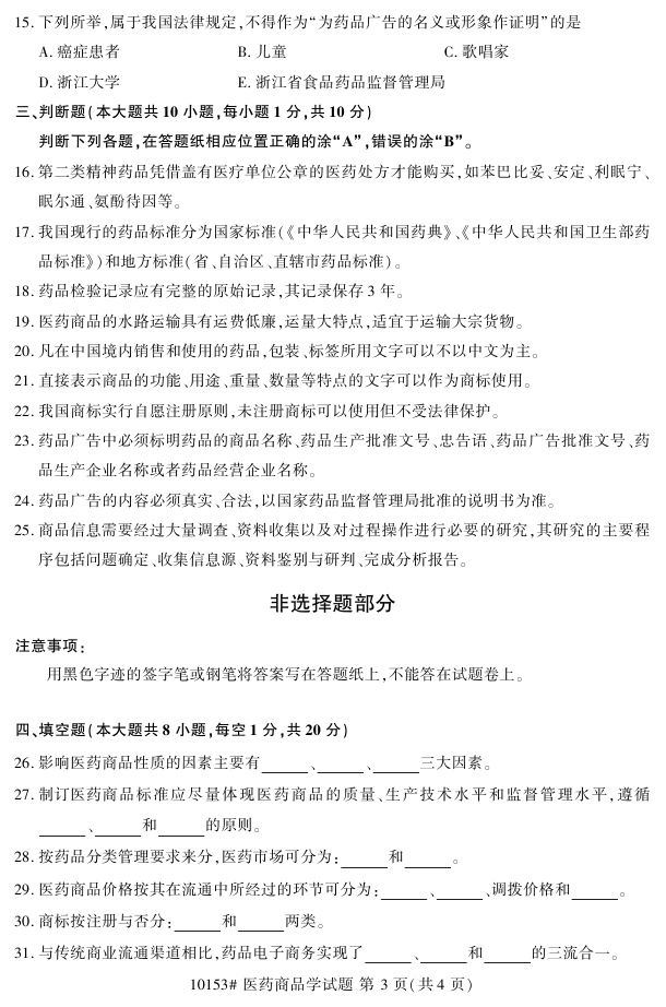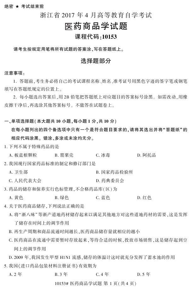浙江省2017年4月自考10153《医药商品学》试题.pdf