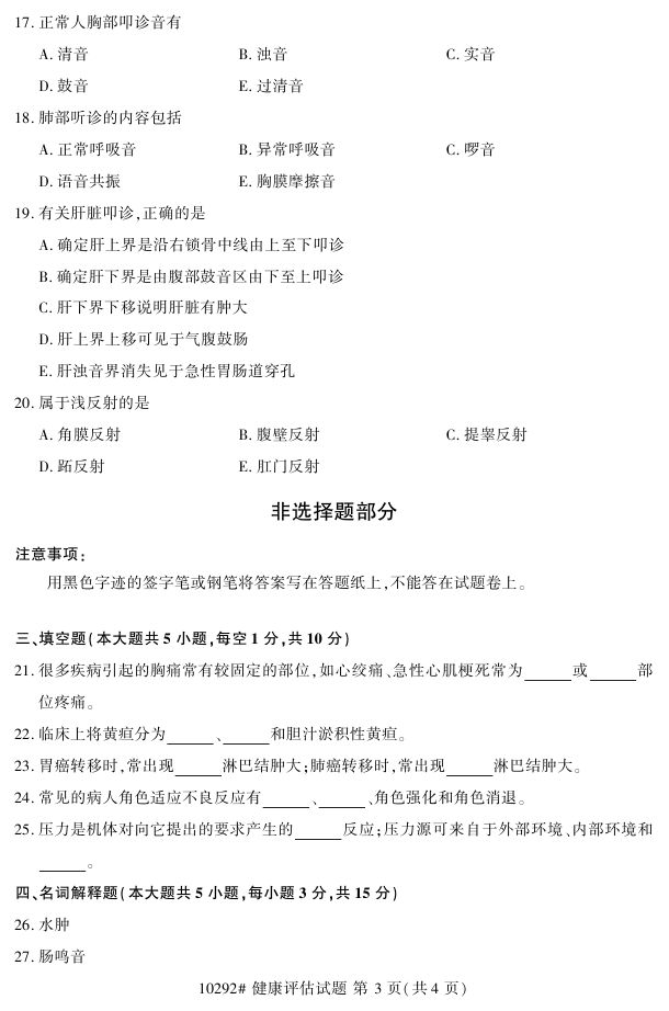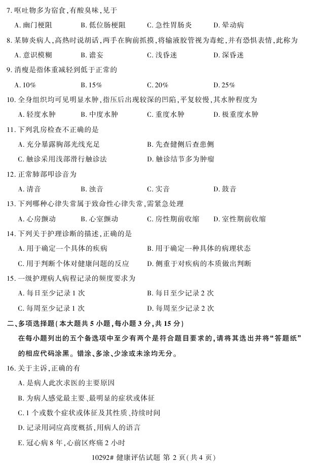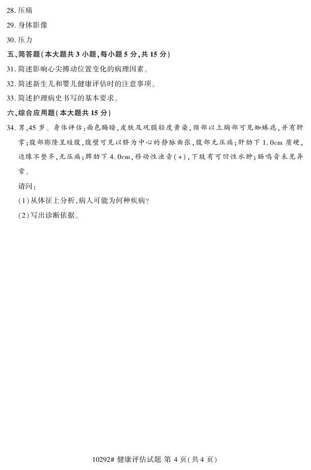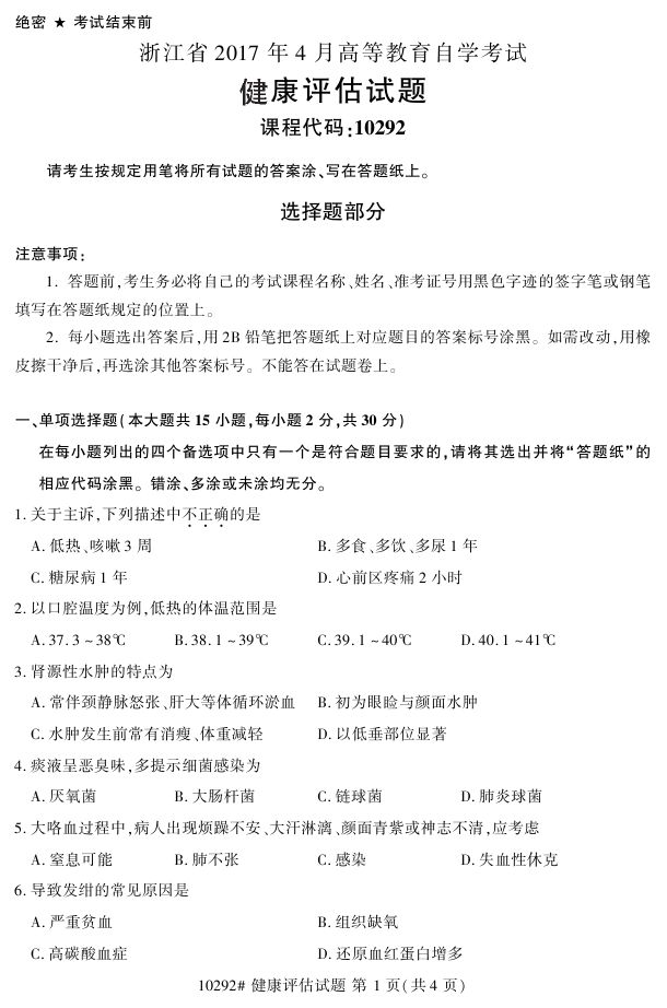 浙江省2017年4月自考10292《健康评估》试题.pdf