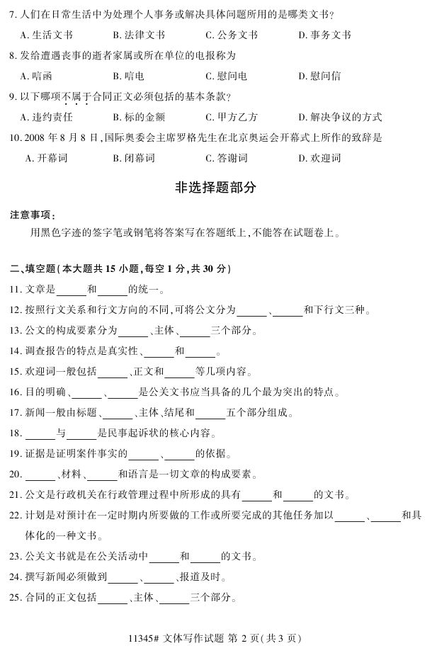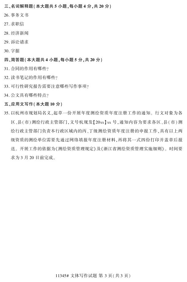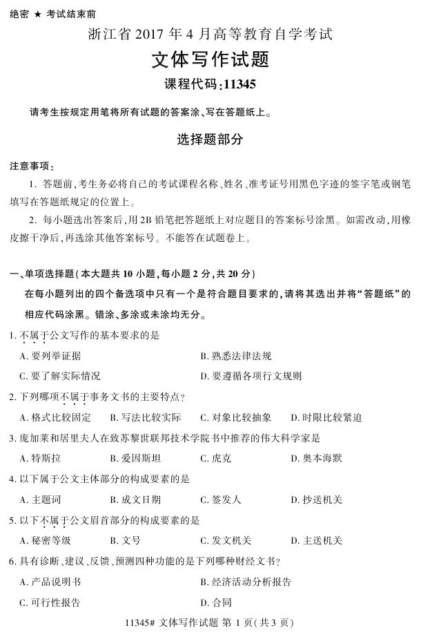 浙江省2017年4月自考11345《文体写作》试题.pdf