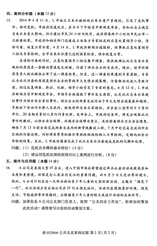全国2017年4月自考03294《公共关系案例》试题