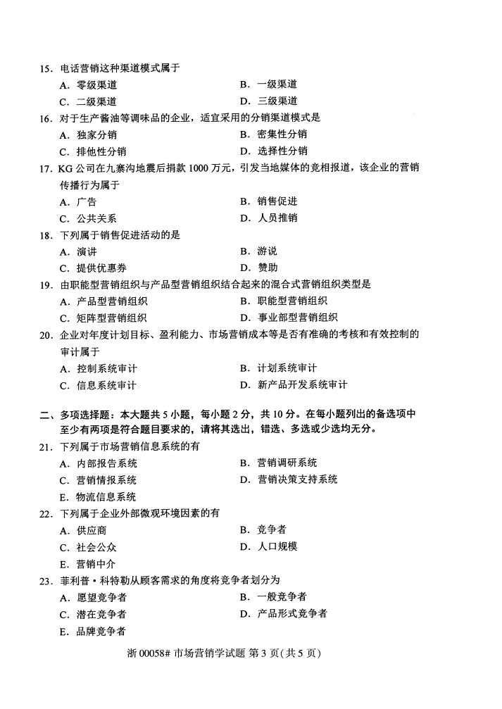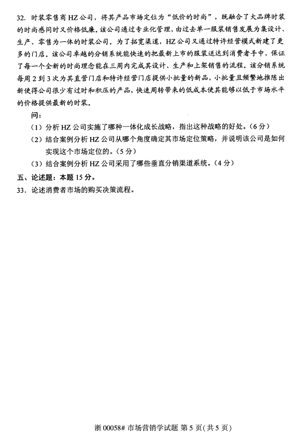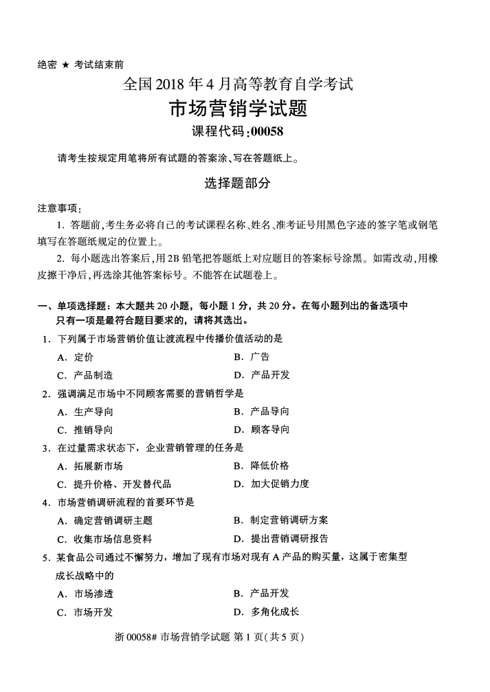 全国2018年4月自考00058市场营销学试题,由浙江自考网整理。更多自考试题练习,请自考学生关注浙江自考网。
