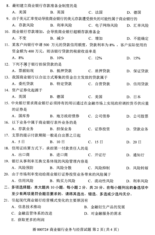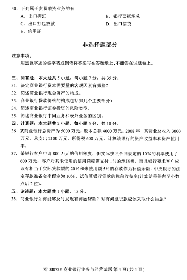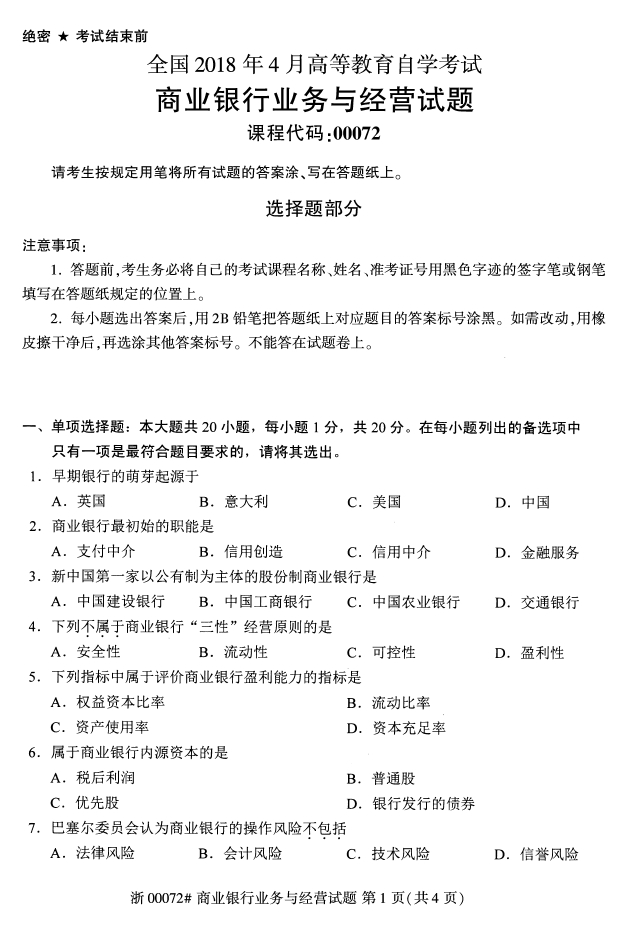 全国2018年4月自考00072商业银行业务与经营试题,由浙江自考网整理。更多自考试题练习,请自考学生关注浙江自考网。