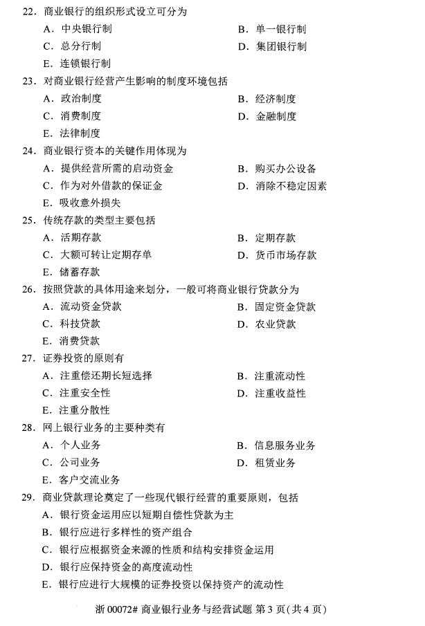 全国2018年4月自考00072商业银行业务与经营试题PDF