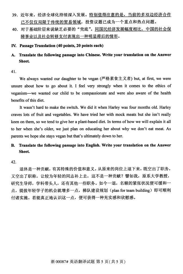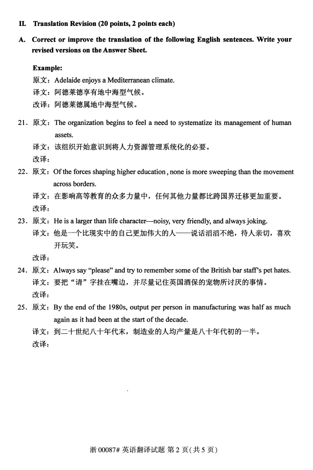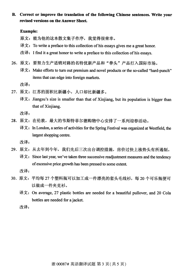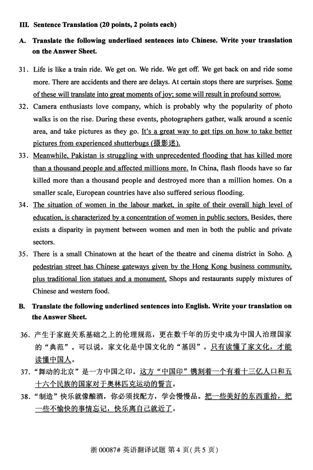 试题科目:英语翻译试题