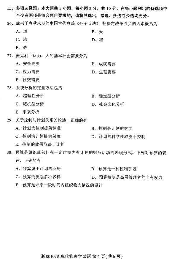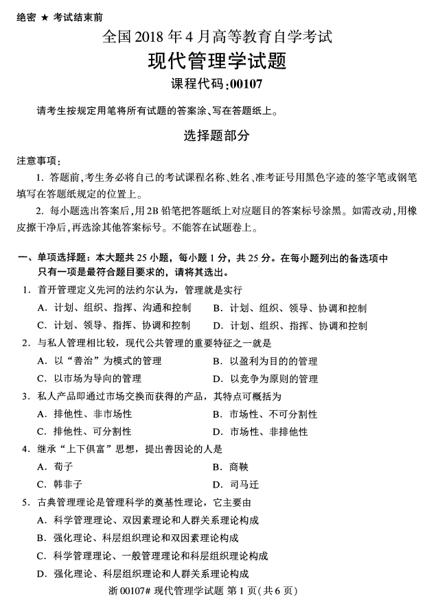 全国2018年4月自考00107现代管理学试题,由浙江自考网整理。更多自考试题练习,请自考学生关注浙江自考网。