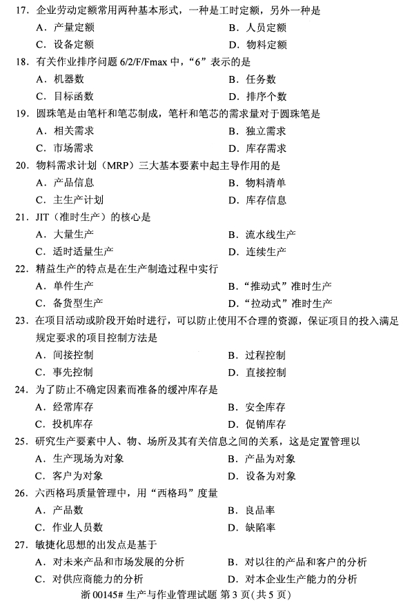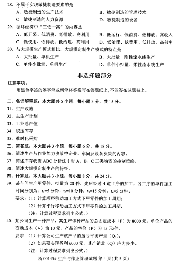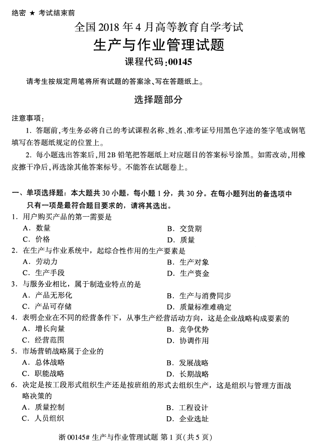 全国2018年4月自考00145生产与作业管理试题,由浙江自考网整理。更多自考试题练习,请自考学生关注浙江自考网。